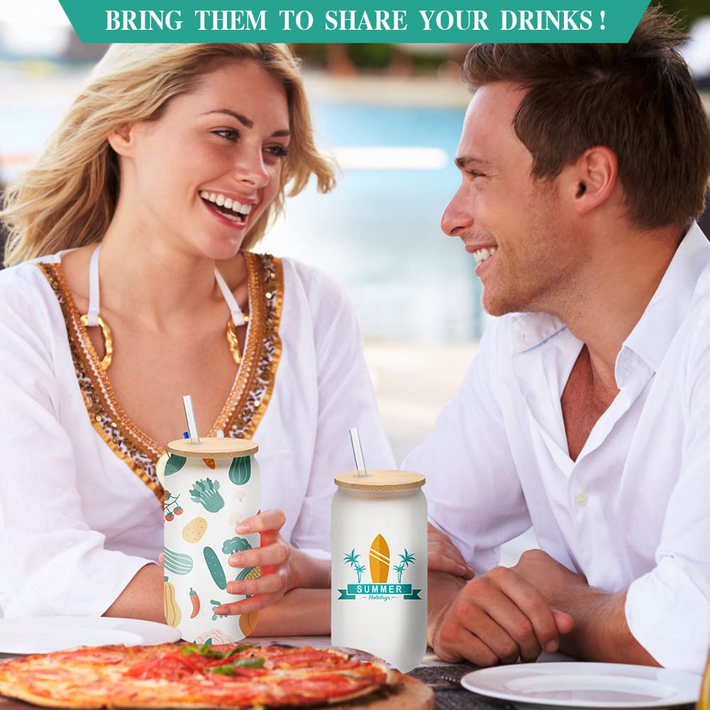 WHEATHUSK 20 Pack Sublimation Glass Cups Frosted 16oz Blanks Sublimation Borosilicate Glasses Tumbler with Bamboo Lids and Straws for Beer, Juice, Soda, Iced Coffee, Drinks