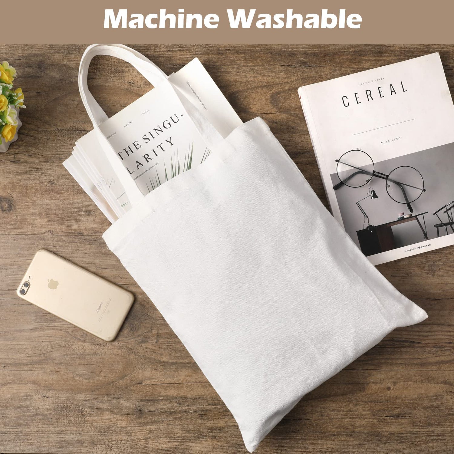 WHEATHUSK 20 Pieces Sublimation Canvas Tote Bags Blank Tote Bags Screen Printing Reusable Washable Polyester Grocery Bags for Heat Transfer Vinyl DIY Crafting White, 14x16 Inch