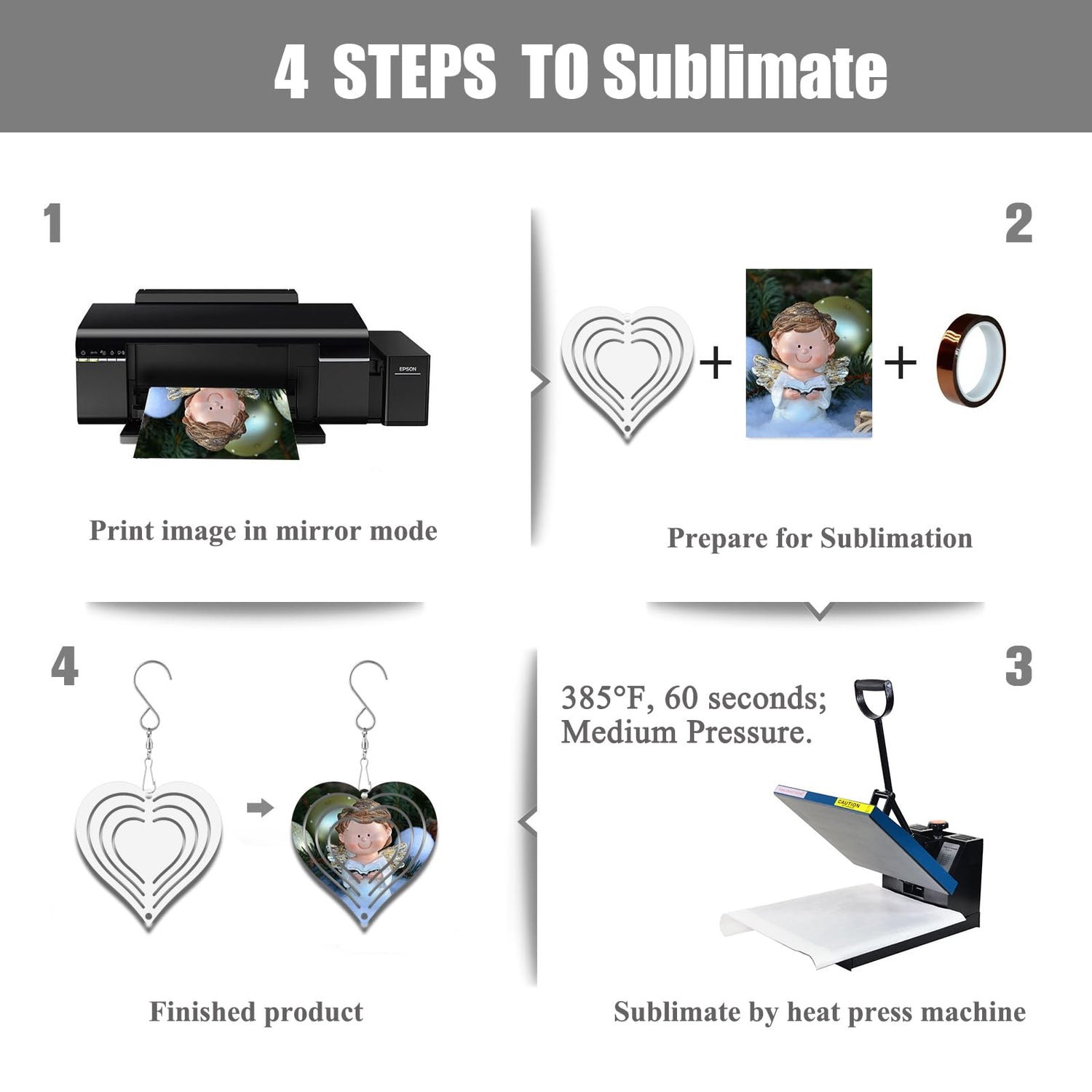 - 【Perfect Sublimation Coating】Our 3D Double Sided Wind Spinners come with premium sublimation coating that promise the sublimation print colors bright and won’t fade. It can be personalized both sides with single or 2 different designs. Heat press setting 385°F for 60 seconds; Medium pressure.