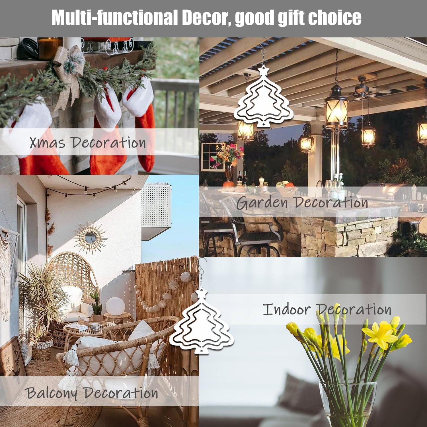 WindMage 12 Pack 4 inch Sublimation Wind Spinner Blanks 3D Aluminum Metal Wind Sculpture Kinetic Spinners for Yard Garden Indoor Art Sublimation Christmas Ornament Hanging Decoration (Xmas Tree)