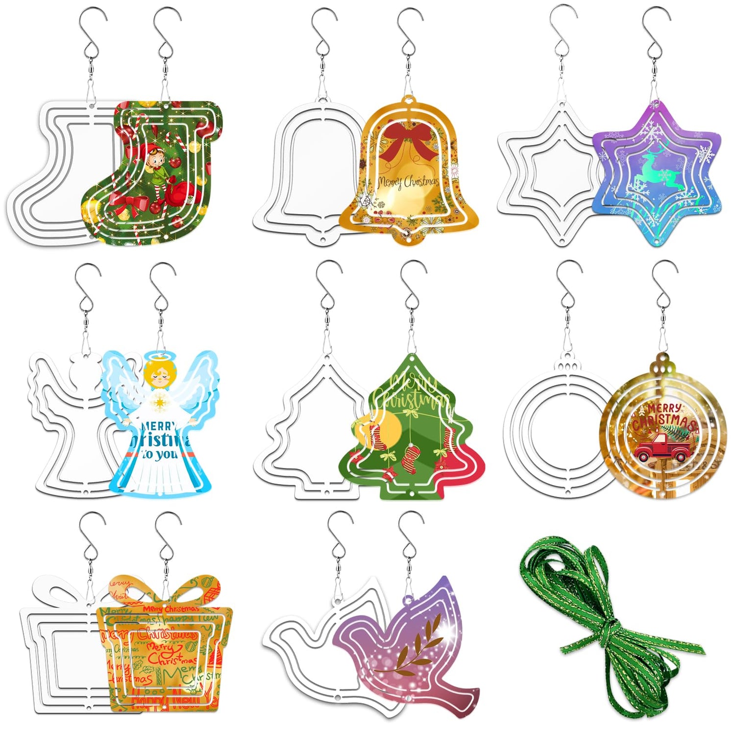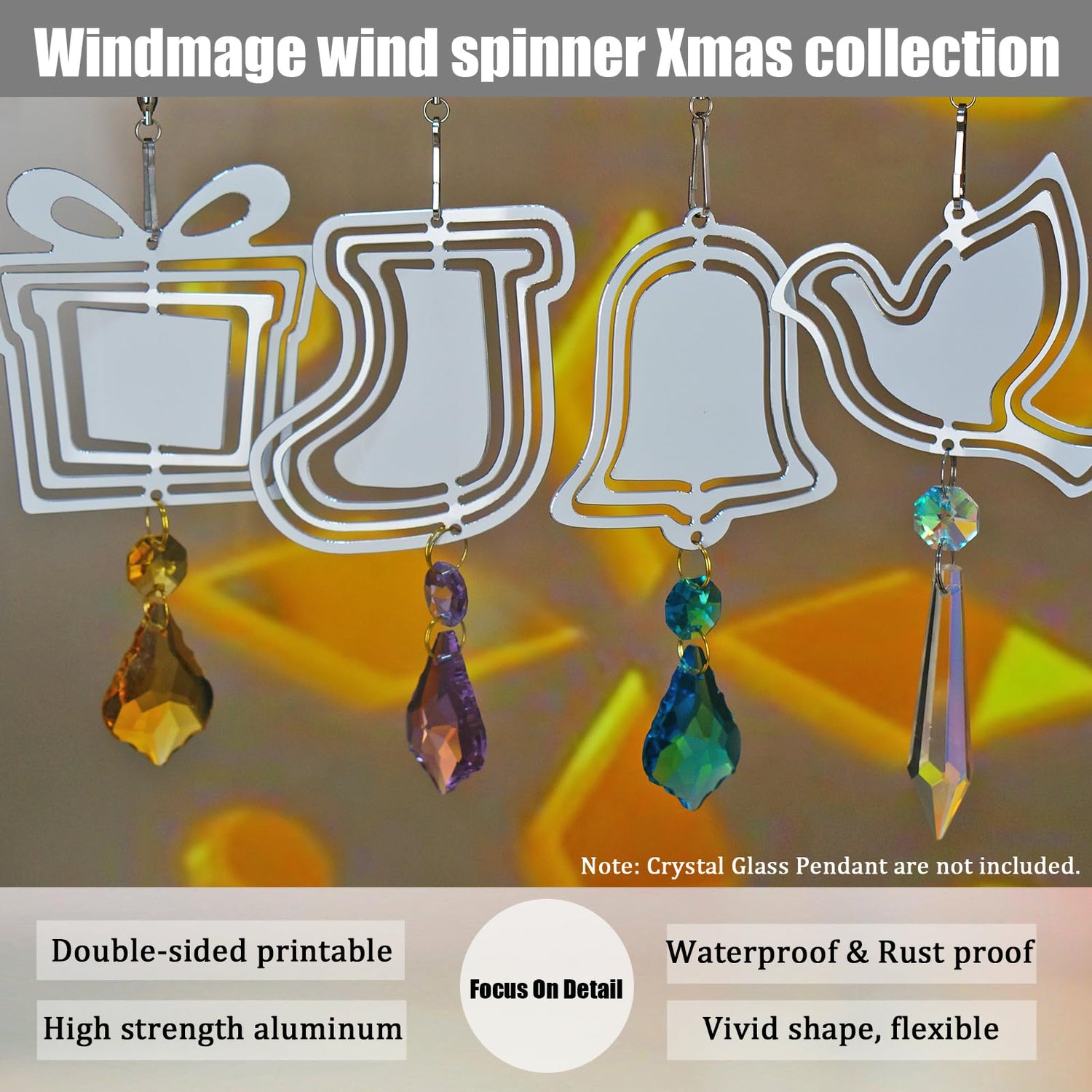WindMage 16Packs 3inch Sublimation Wind Spinner Blanks 3D Aluminum Metal Wind Sculpture Kinetic Spinners for Yard and Garden Indoor Art Sublimation Christmas Ornament Hanging Decoration