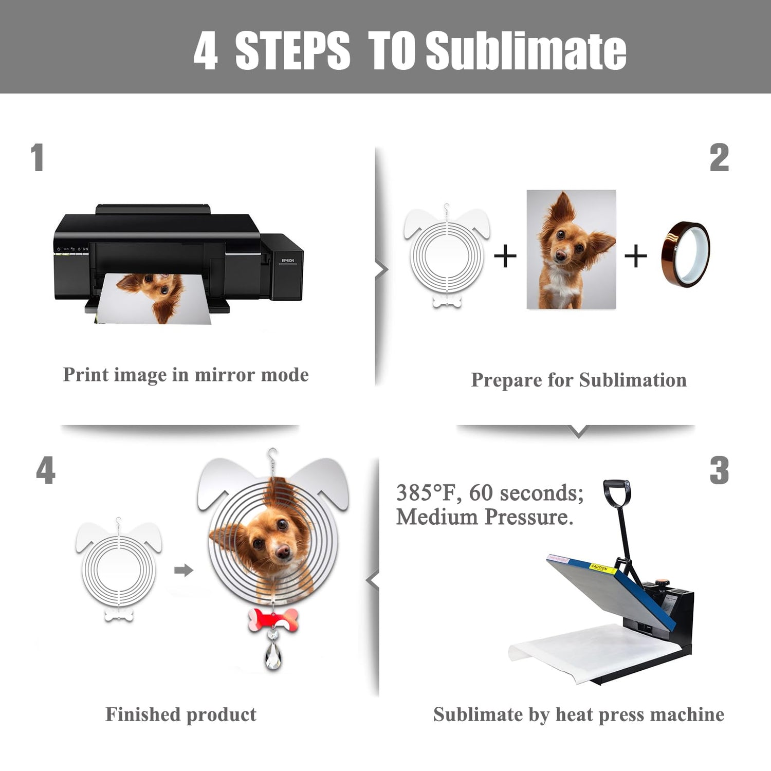 - 【Perfect Sublimation Coating】Our 3D Double Sided Wind Spinners come with premium sublimation coating that promise the sublimation print colors bright and won’t fade. It can be personalized both sides with single or 2 different designs. Heat press setting 385°F for 60 seconds; Medium pressure.