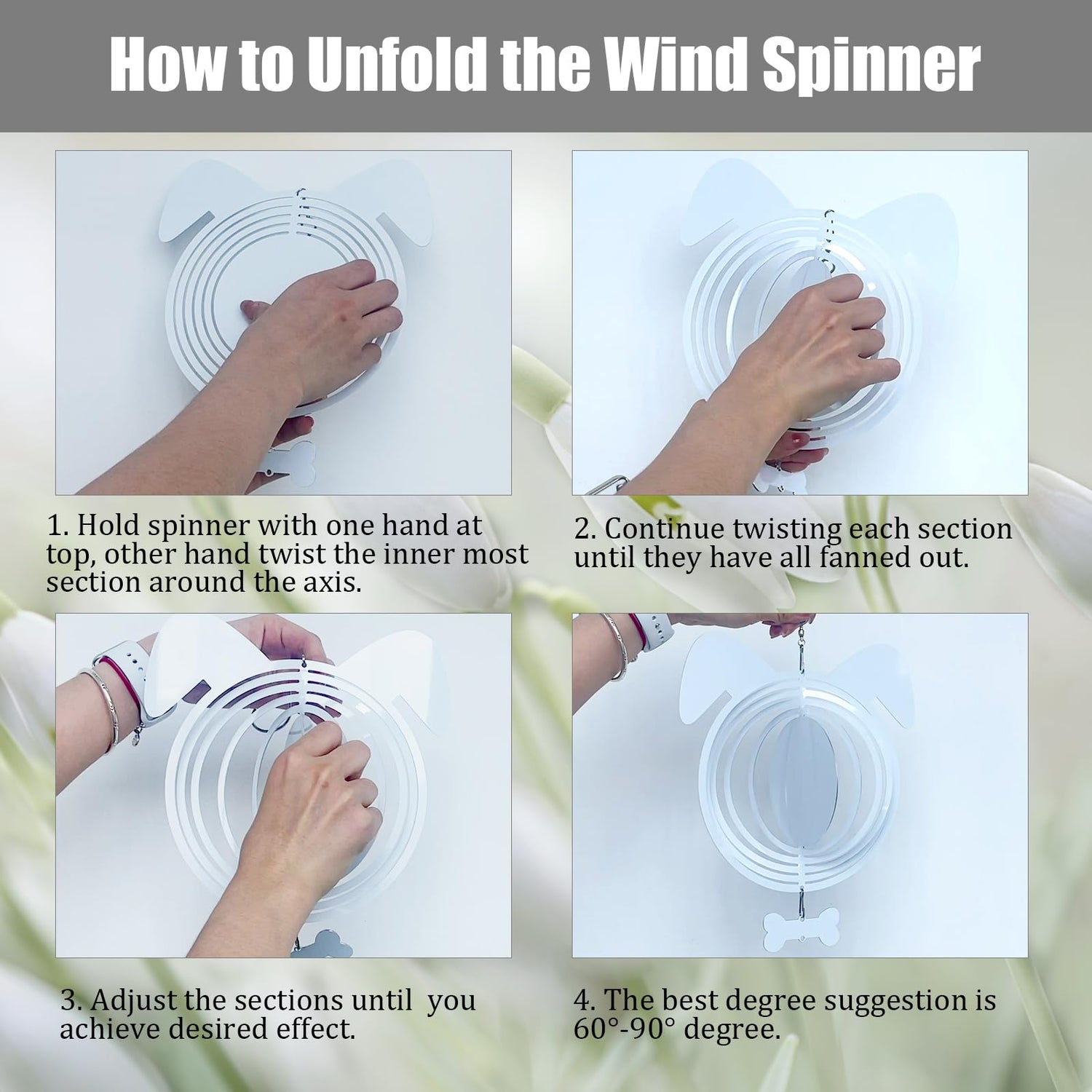 - 【Easy Assemble and Hang】 With easy to follow instructions for installation, no additional tools are necessary. Just pull and tweak to fan out the sections evenly. Simply hang the wind spinner in a location which catches the breeze and enjoy the kinetic movement of our outdoor wind spinners in the slightest of breeze. Designed with a hole on the bottom edge, you can hang some pendants and accessories according to your preferences.