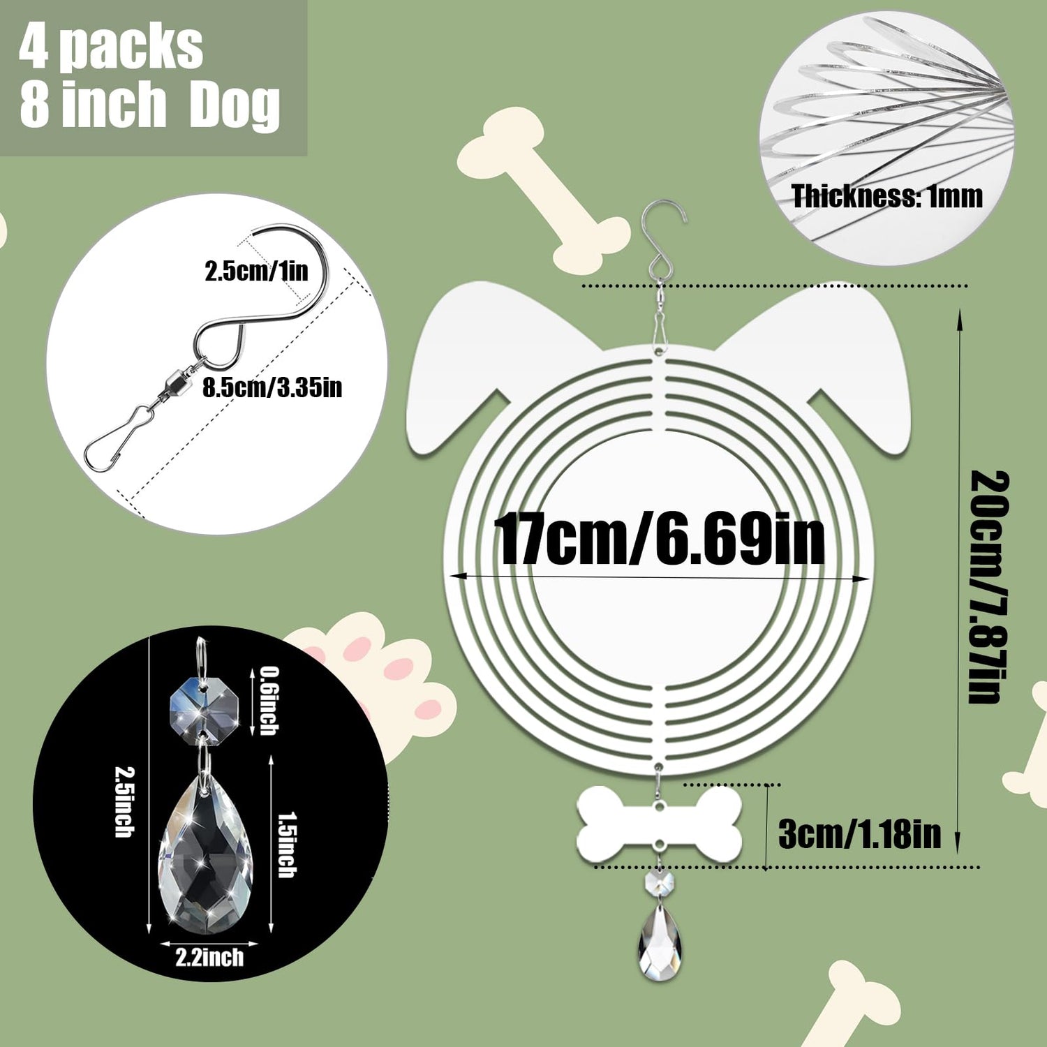WindMage 4Pack 8 inch Sublimation Wind Spinner Blanks 3D Aluminum Metal Wind Sculpture Kinetic Spinners for Yard and Garden Indoor Art Ornaments Hanging Decoration (Dog)