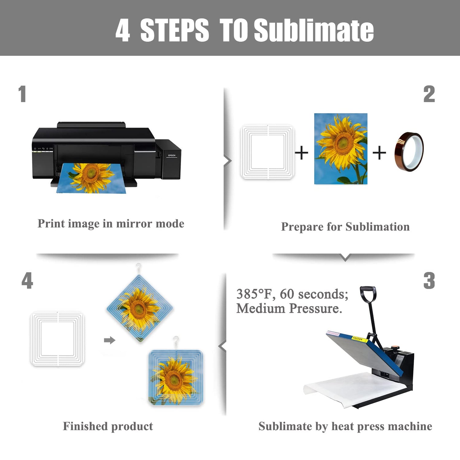 - 【Perfect Sublimation Coating】Our 3D Double Sided Wind Spinners come with premium sublimation coating that promise the sublimation print colors bright and won’t fade. It can be personalized both sides with single or 2 different designs. Heat press setting 385°F for 60 seconds; Medium pressure.
