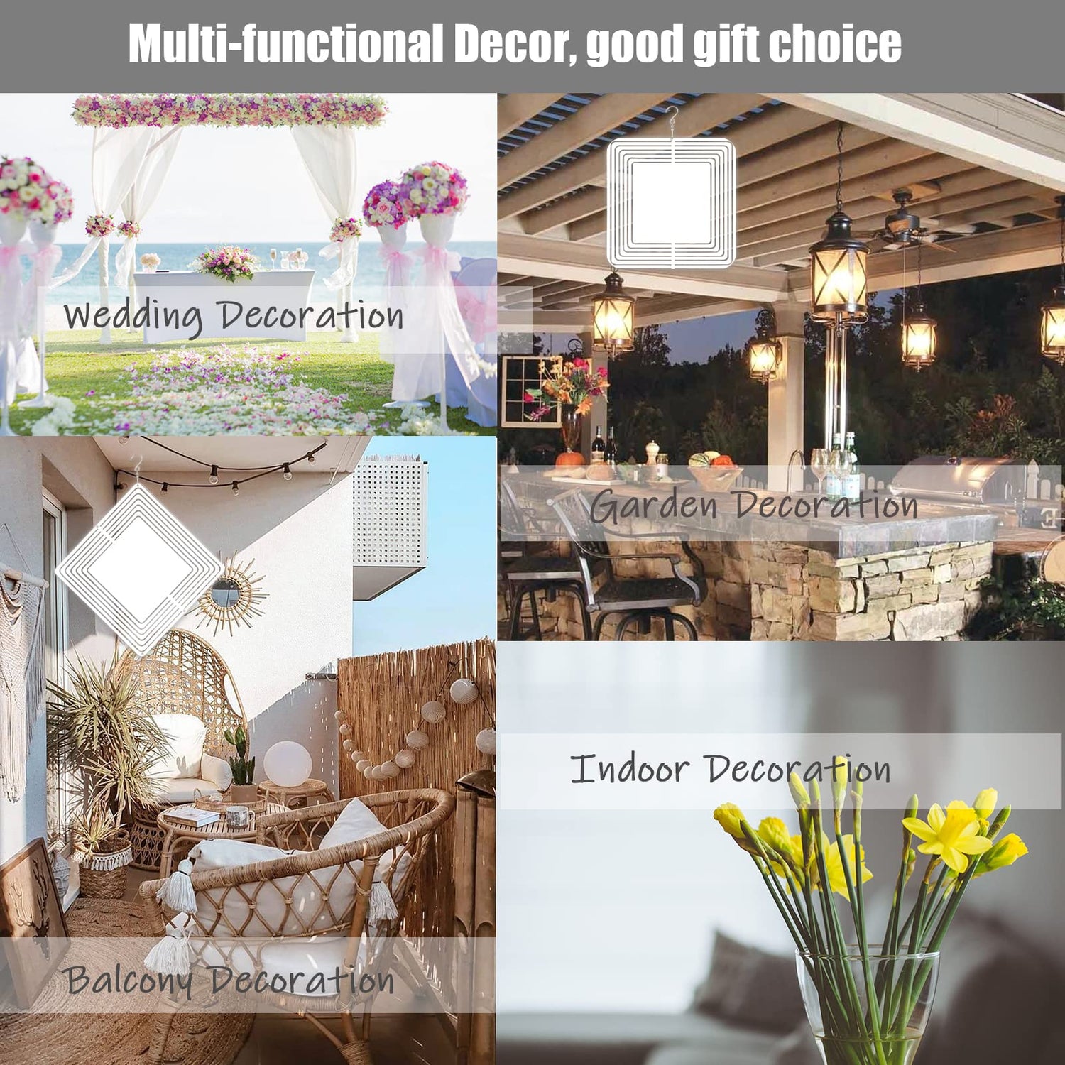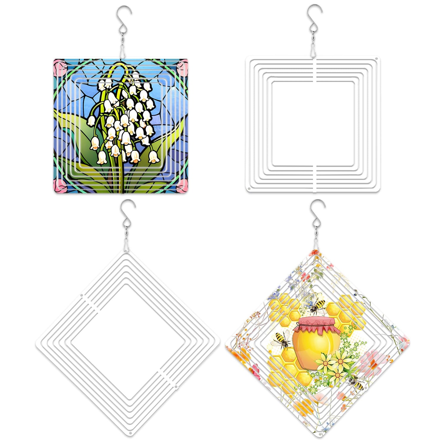 WindMage 4Pack 8inch Sublimation Wind Spinner Blanks 3D Aluminum Metal Wind Sculpture Kinetic Spinners for Yard and Garden Indoor Art Ornaments Hanging Decoration (Square)