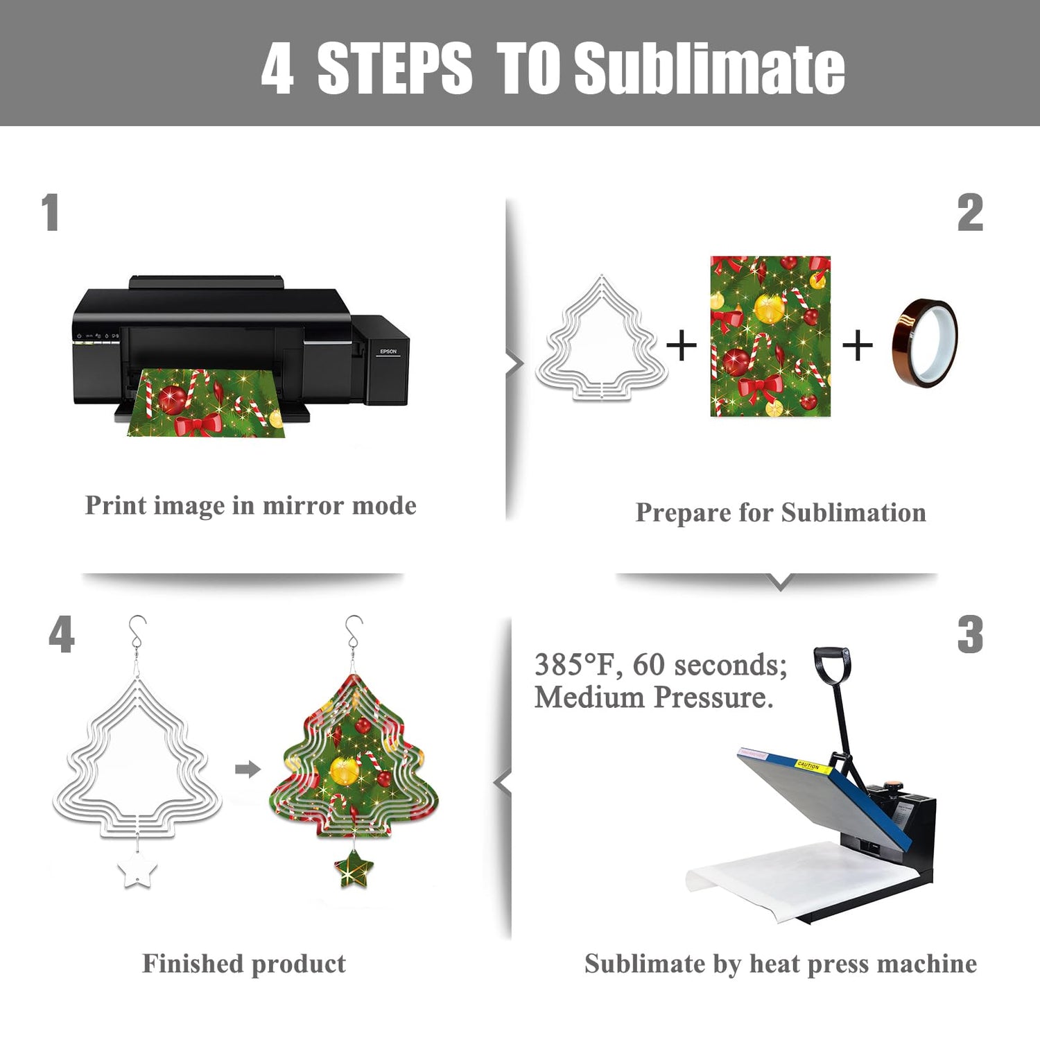 • 【Perfect Sublimation Coating】Our 3D Double Sided Wind Spinners come with premium sublimation coating that promise the sublimation print colors bright and won’t fade. It can be personalized both sides with single or 2 different designs. Heat press setting 385°F for 60 seconds; Medium pressure.
