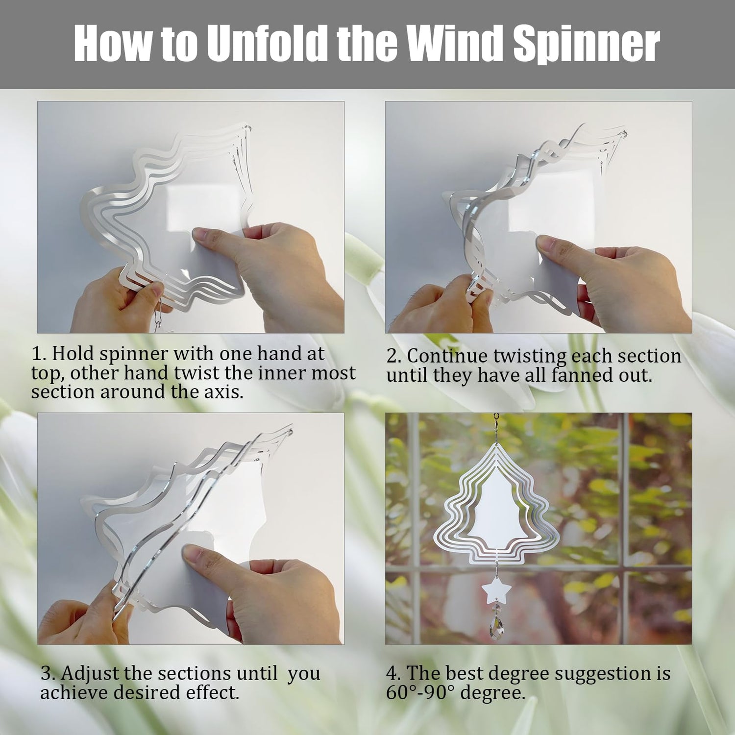 WindMage 4Pack 8inch Sublimation Wind Spinner Blanks 3D Aluminum Metal Wind Sculpture Kinetic Spinners for Yard and Garden Indoor Art Sublimation Christmas Ornament Hanging Decoration (Xmas Tree)