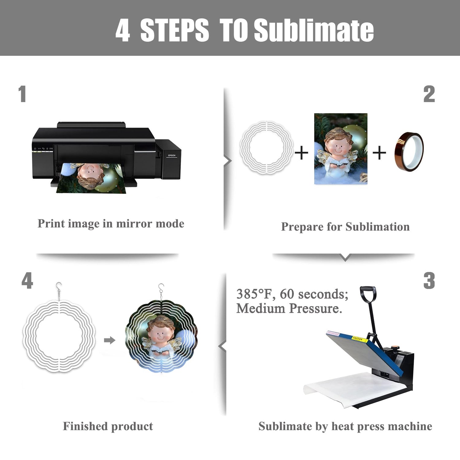 - 【Perfect Sublimation Coating】Our 3D Double Sided Wind Spinners come with premium sublimation coating that promise the sublimation print colors bright and won’t fade. It can be personalized both sides with single or 2 different designs. Heat press setting 385°F for 60 seconds; Medium pressure.