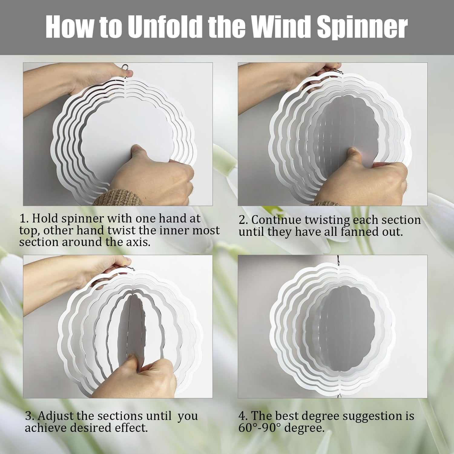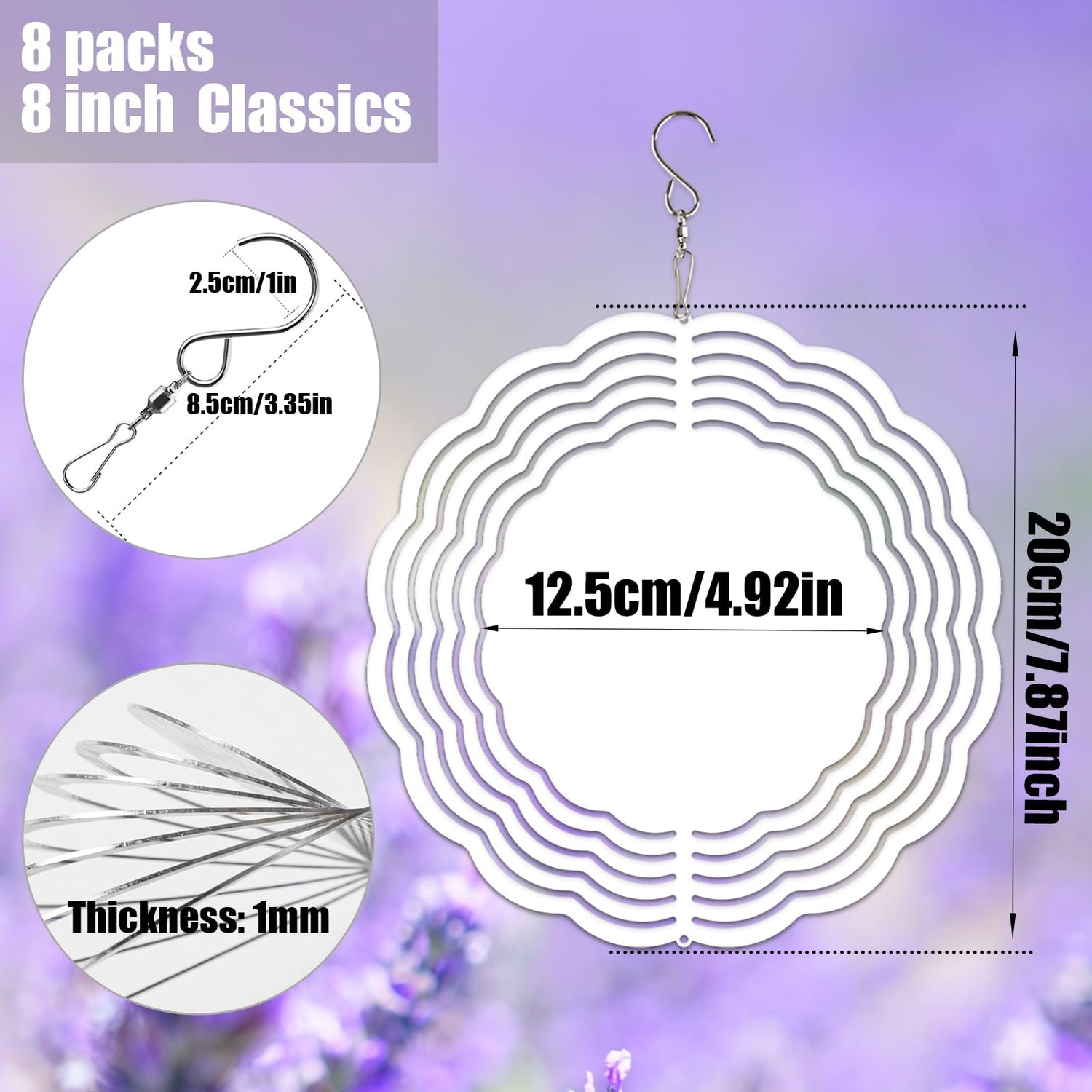 WindMage 8 Pack 8inch Sublimation Wind Spinner Blanks 3D Aluminum Metal Wind Sculpture Kinetic Spinners for Yard and Garden Indoor Art Ornaments Hanging Decoration (Classics)