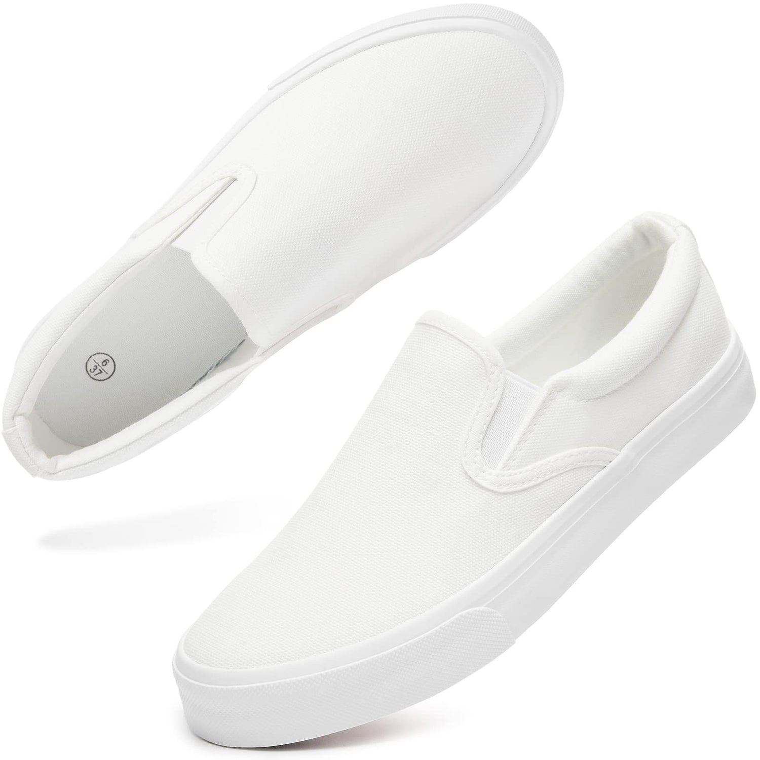 Women's Slip on Shoes Low Top Canvas Sneakers Non Slip Fashion Casual Shoes(White Mono.US8