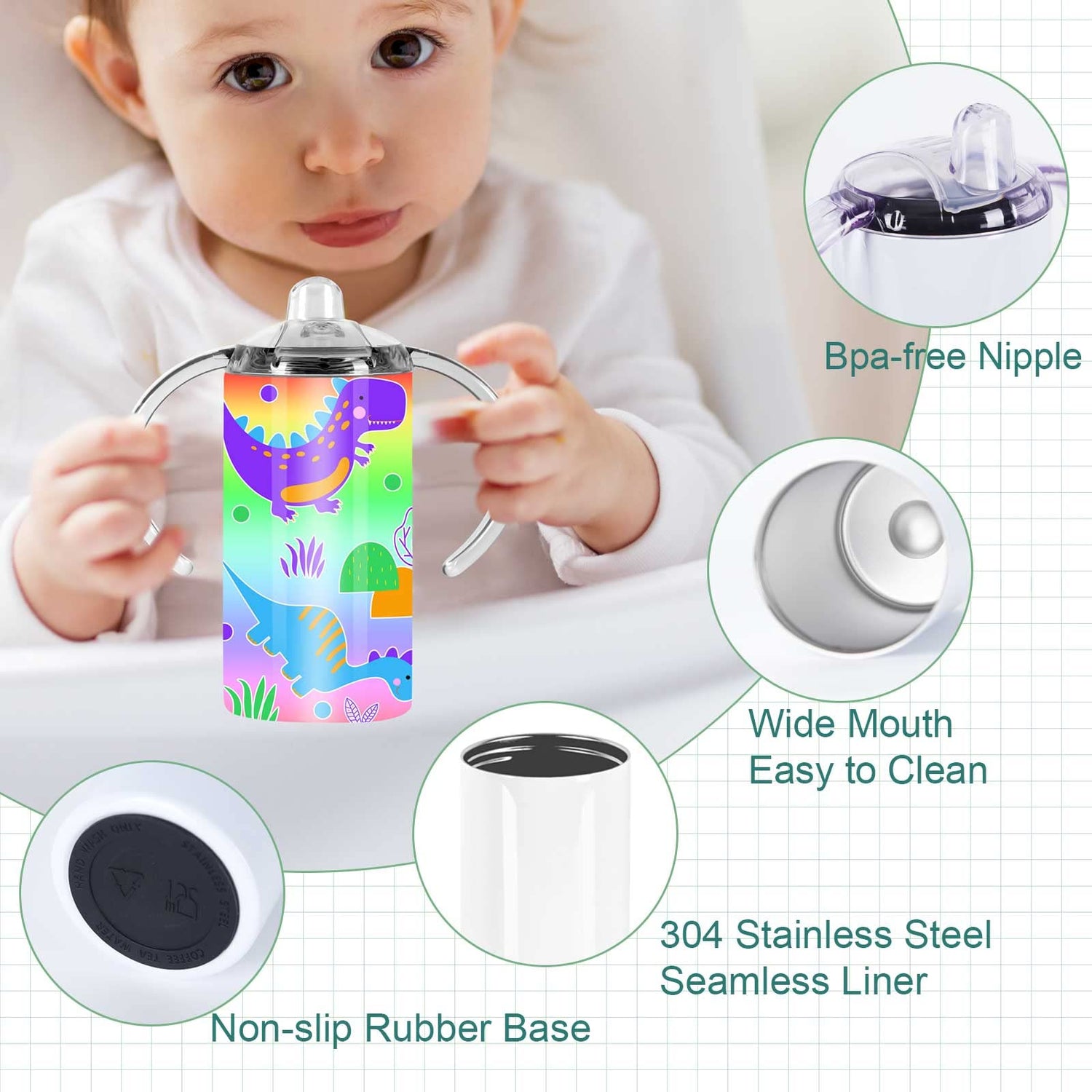 - PREMIUM QUALITY: Made of 304 18/8 stainless steel, this 12 oz sublimation sippy cup is resistant to break and rust. Adopting double wall vacuum insulation technology, the stainless steel sippy cup can keep your drinks cold for 12 hours and hot for 5 hours.