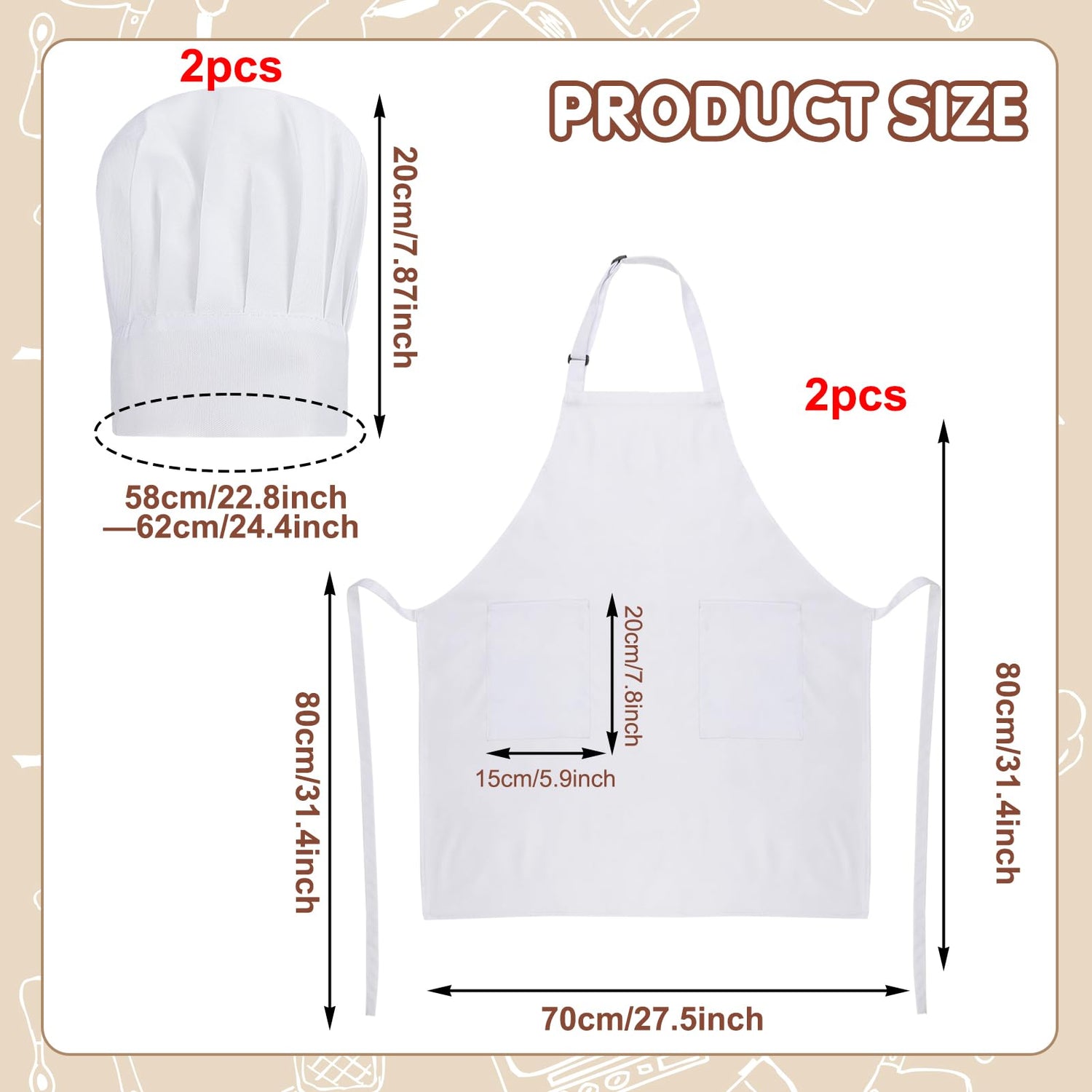 - COMBINATION SET - Chef hat and apron set including 2 pieces of chef aprons and 2 pieces of chef hat. 2 apron sets are enough to meet your daily needs