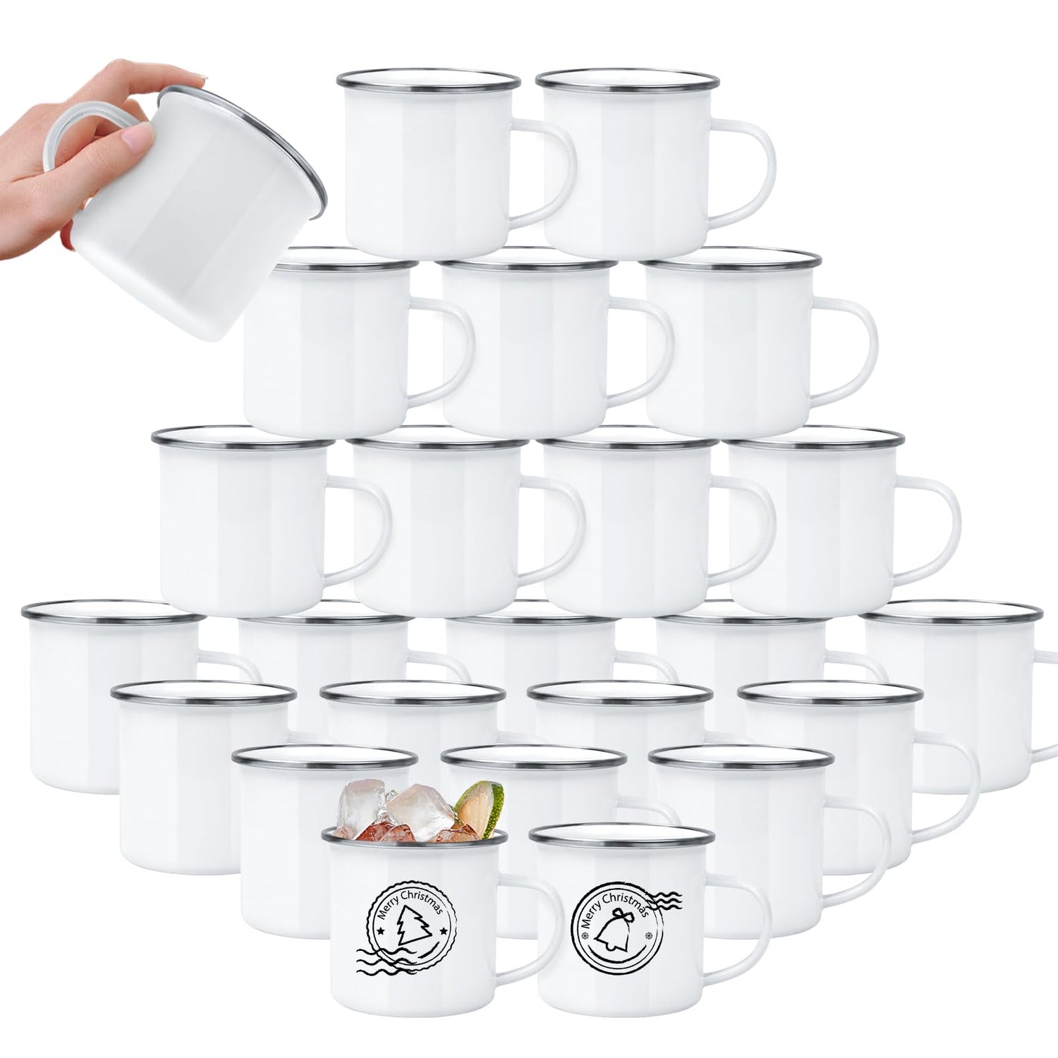 YOUKE OLA 24 Pack Sublimation Blanks Enamel Mug Camping Outdoor Coffee Travel Metal Mug with Silver Rim for Heat Transfer DIY Gift White 12oz