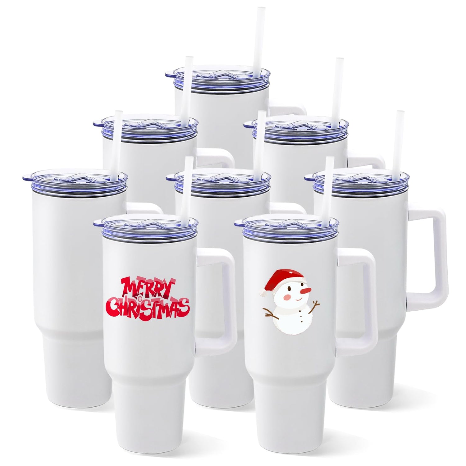 YOUKE OLA 8 Pack Sublimation Tumblers 40oz with Handle Blanks Stainless Steel Insulated Large Tumbler Bulk Coffee Travel Cups for Tumbler Heat Press Sublimation Oven Printing, White
