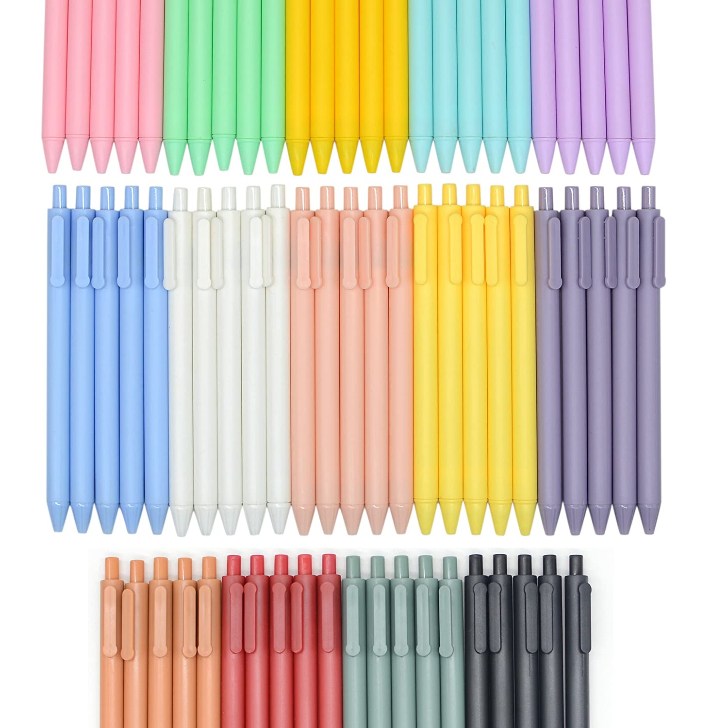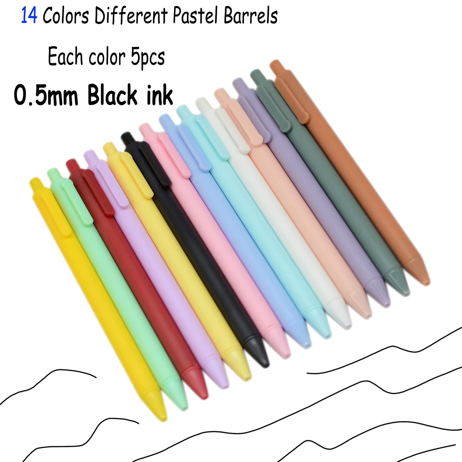 - Retractable and Unique design: 0.5 mm medium point Bullet Point. 14 colors, each color 5pcs. Come with a cute look ,Unique and lovely.Sufficient quantity and colors meet different needs.