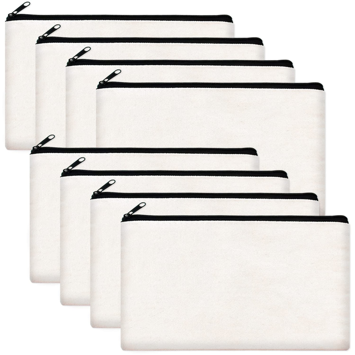 ZeeDix 8 Packs 8.3 x 5 inches Blank DIY Craft Bag Canvas - White Canvas Zipper Pouch Bags Multipurpose Cosmetic Bag Canvas Makeup Pouch with Zipper, Travel Toiletry Bag for Storage