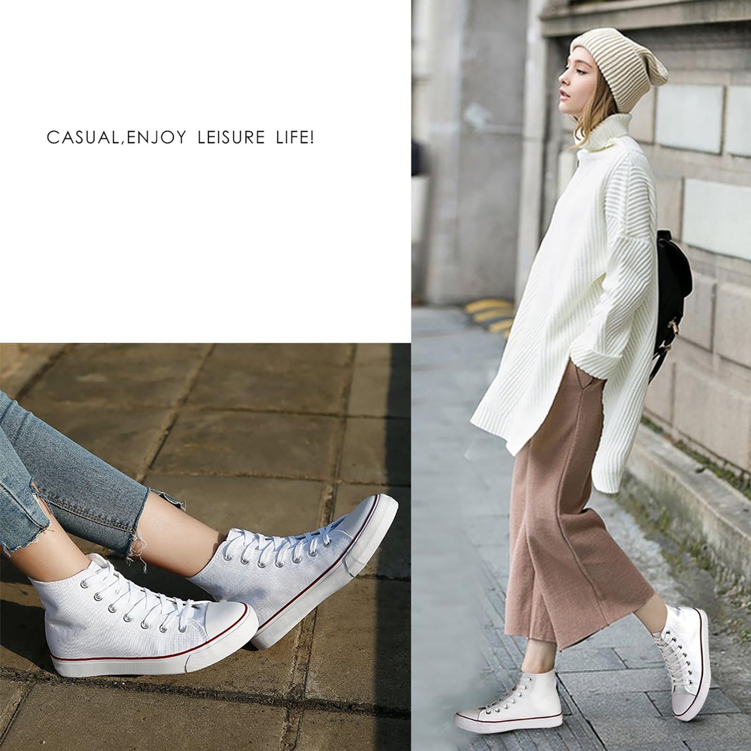 ZGR Womens Fashion Canvas Sneaker Low Cut Lace ups Casual Shoes (7 B(M) US, High-top White)