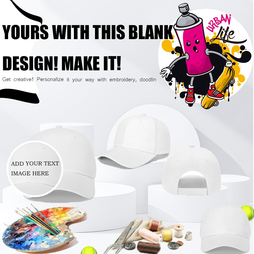 - [Blank Design] Our blank baseball caps feature a plain design that not only exudes classic simplicity but is also perfect for embroidery and DIY customization.This minimalist approach ensures that they remain versatile for any style,making them an ideal canvas for personal or group expression while maintaining a timeless appeal.