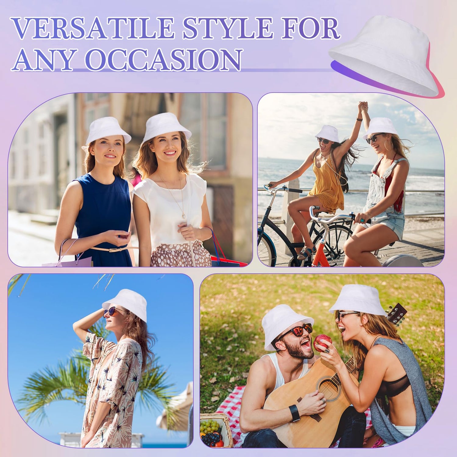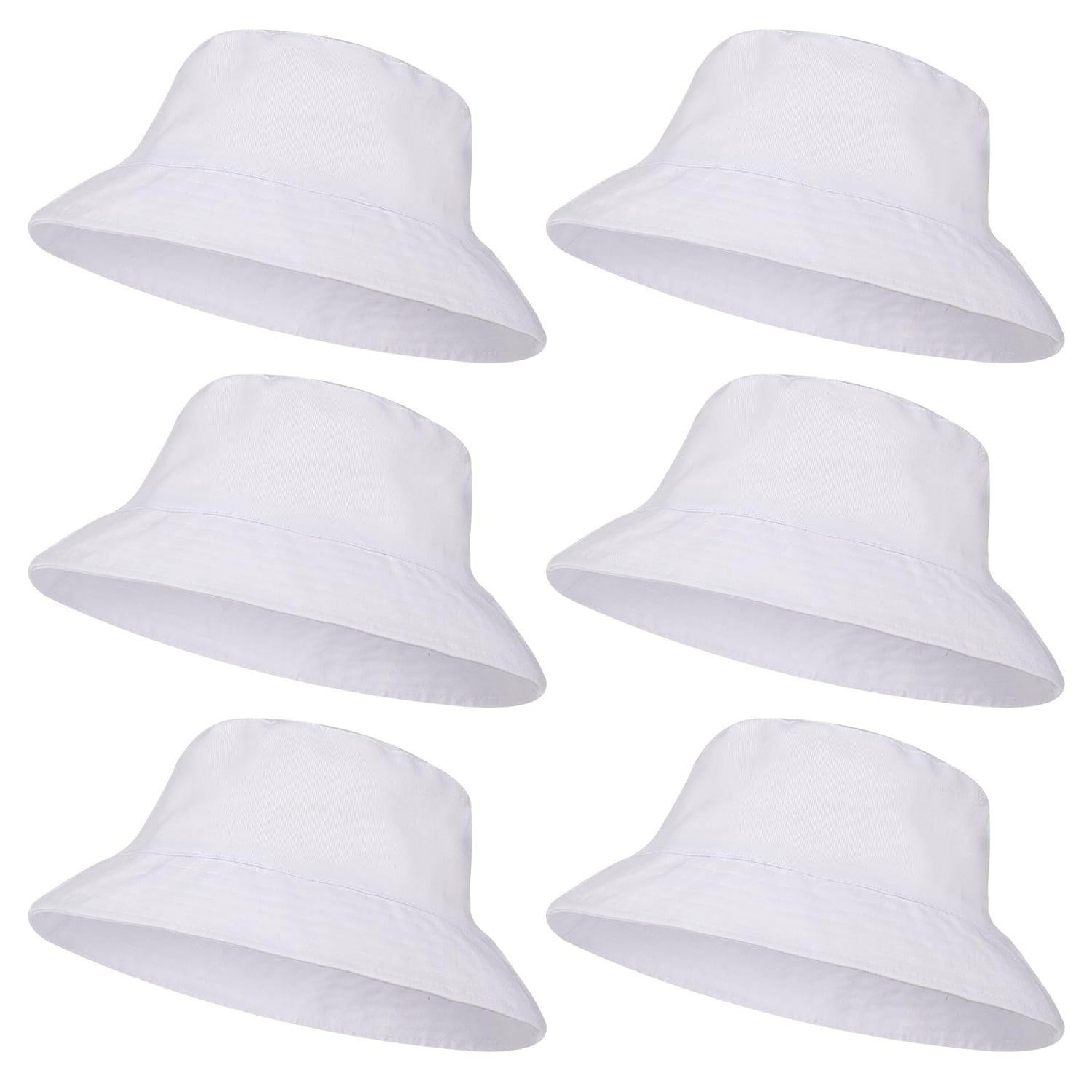 Ziimaikery 6 Pcs White Bucket Hats Bulk, Bucket Hat for Women Men Adult Summer Plain Fishing Bucket Cap Sublimation Hats Blank Beach Fishing Cap, Two Sided White, 22 Inches Circumference