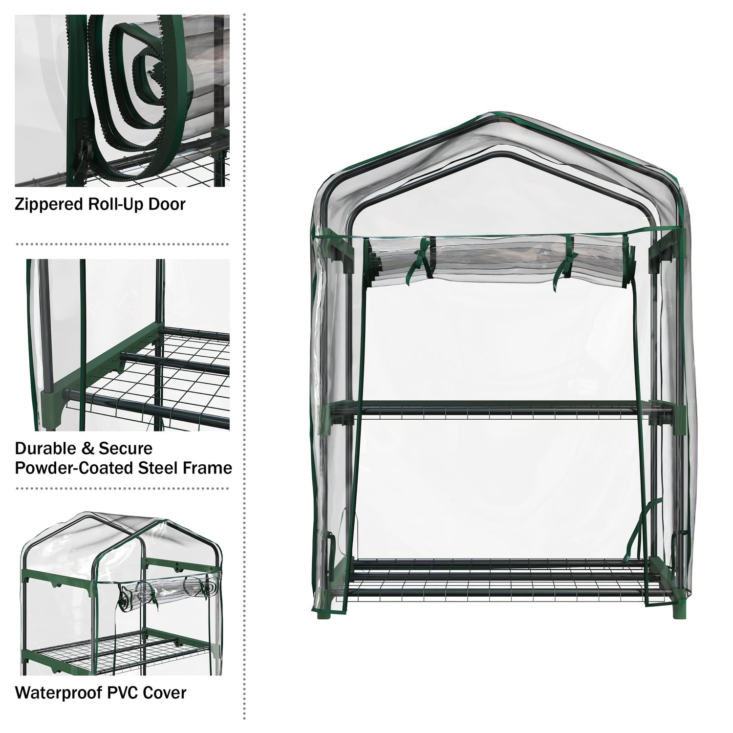 Home-Complete Small Greenhouse for Outdoors, 2-Tier Greenhouse with Zippered Roll-up Door and Powder-Coated Steel Frames, Waterproof PVC Cover for All-Season Gardening