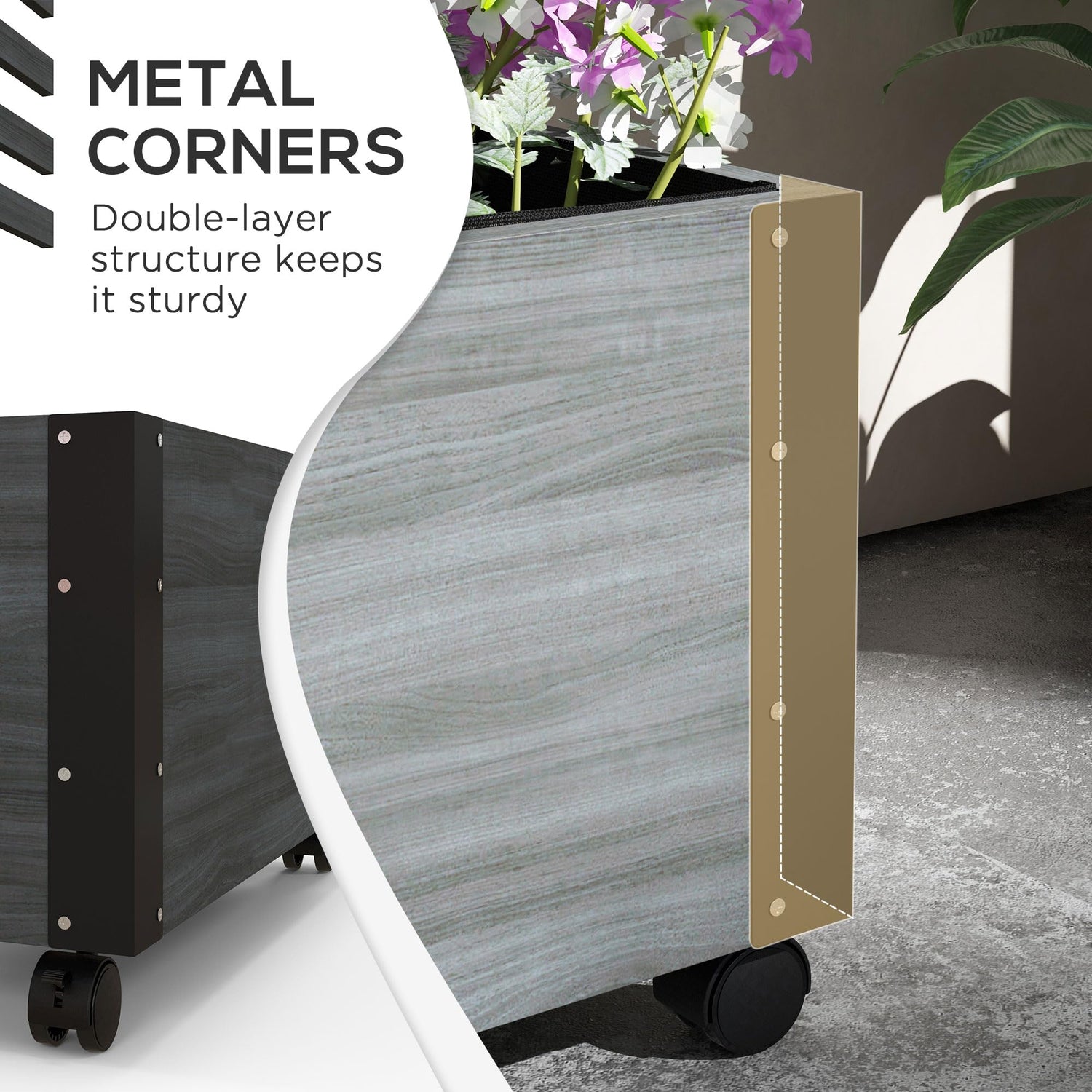 Outsunny Raised Garden Bed with Trellis, 58" Outdoor Wooden Planter Box with Wheels, for Vine Plants Flowers Climbing and Planting, Gray