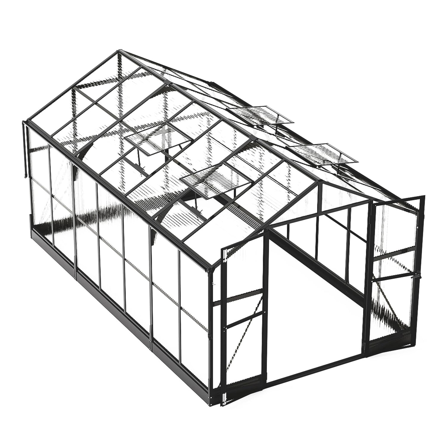 PaPaJet 8x14 FT Polycarbonate Greenhouse with Quick-Connect Fittings, Walk-in Large Aluminum Greenhouse with 2 Swing Doors, Winter Greenhouse for Outdoors Black