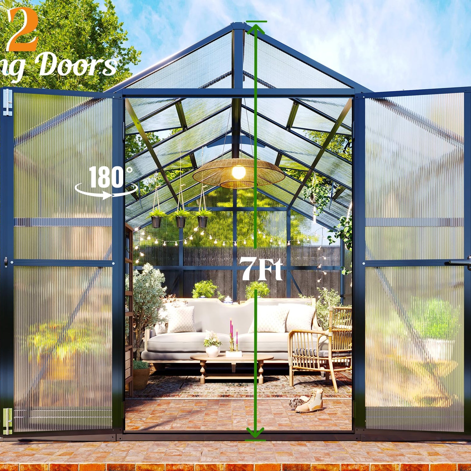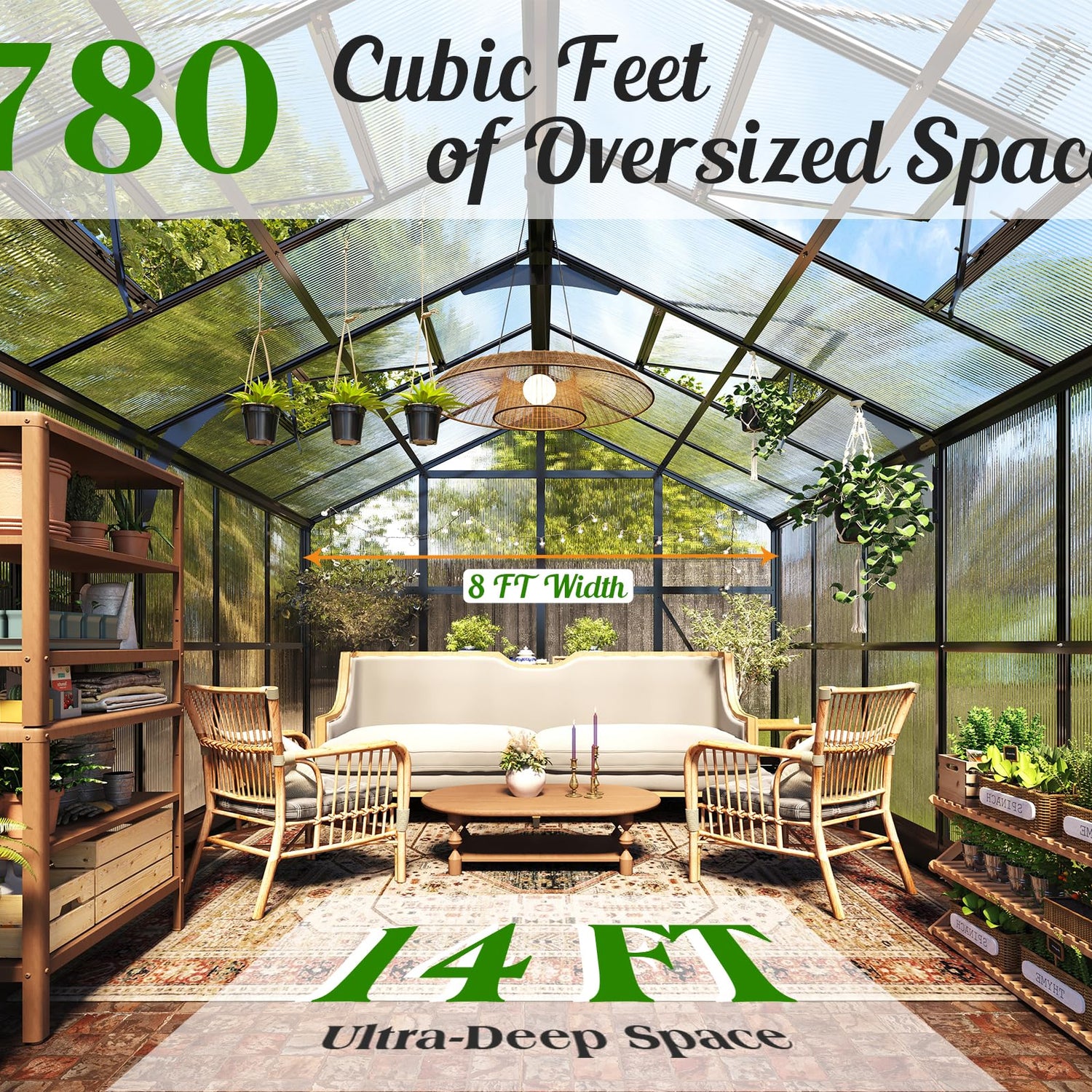 - Ample Space: Sunroom with 12 Ft depth offers 780 Cu.Ft. space to contain tall plants and workbenches. Combining outdoor leisure living and gardening into one space.