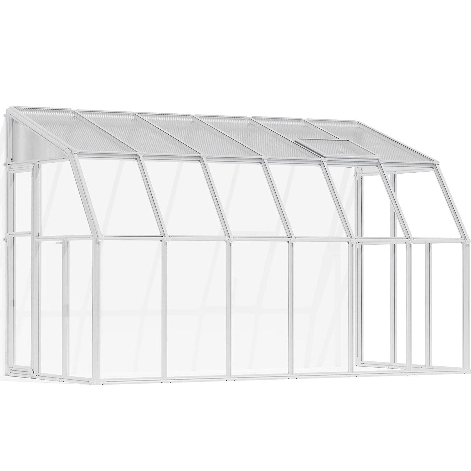 Discover the simplest way to turn your existing porch, deck or patio into a great sunroom enclosure or greenhouse space. The Sun Room 2 features two kinds of virtually unbreakable coverings to give you the best of both worlds. Roof panels are 4mm twin-wall polycarbonate, offering UV protection and diffuse light. Crystal clear acrylic side walls are 100% UV protected while allowing over 90% light transmission, as well as clear views, while being ultra-safe. Durable white resin frame improves insulation and is maintenance free for ease of use. Hinged door and included roof vent provide air circulation. Accessories and additional lengths available.