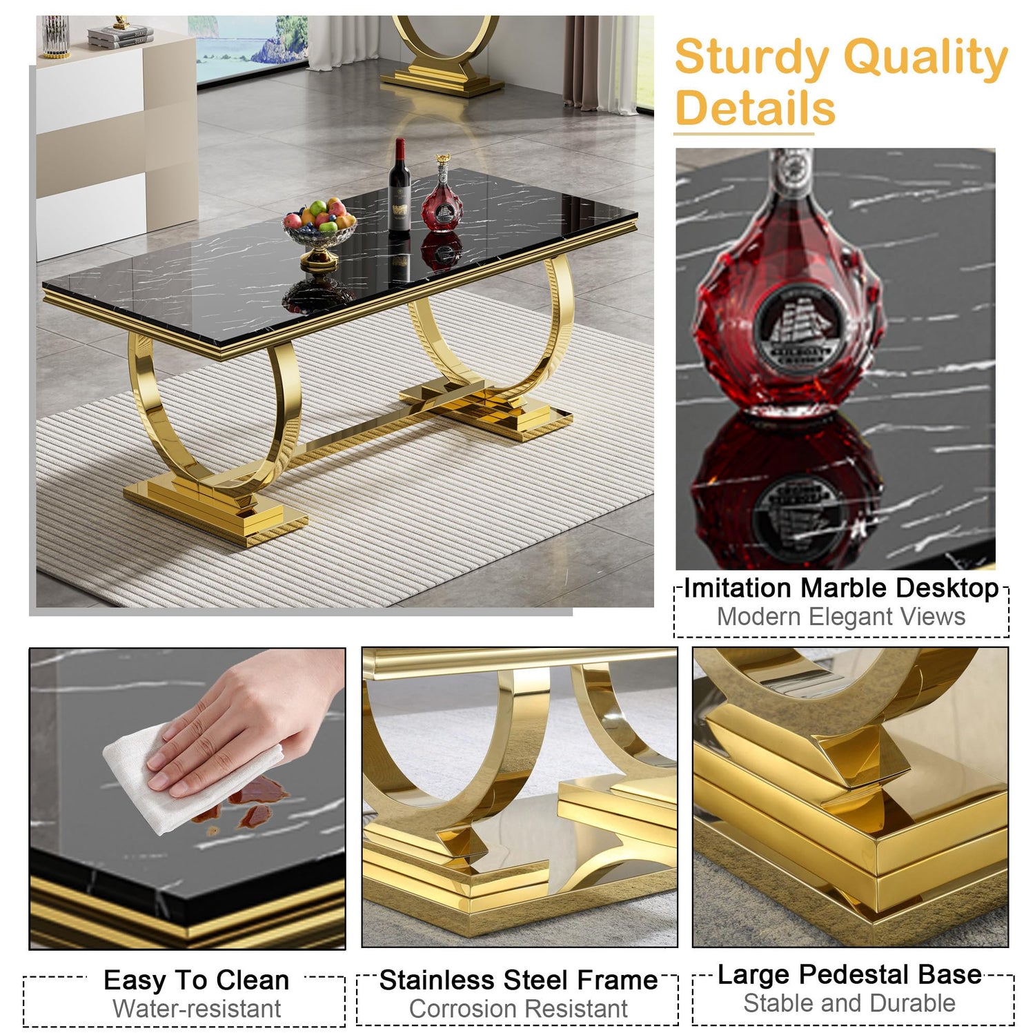 2. Sturdy Stainless Steel Base - The table features 201 stainless steel u-shape frame and pedestal base with an electroplated 8K mirrored finish, offering strong support and excellent resistance to rust and oxidation.