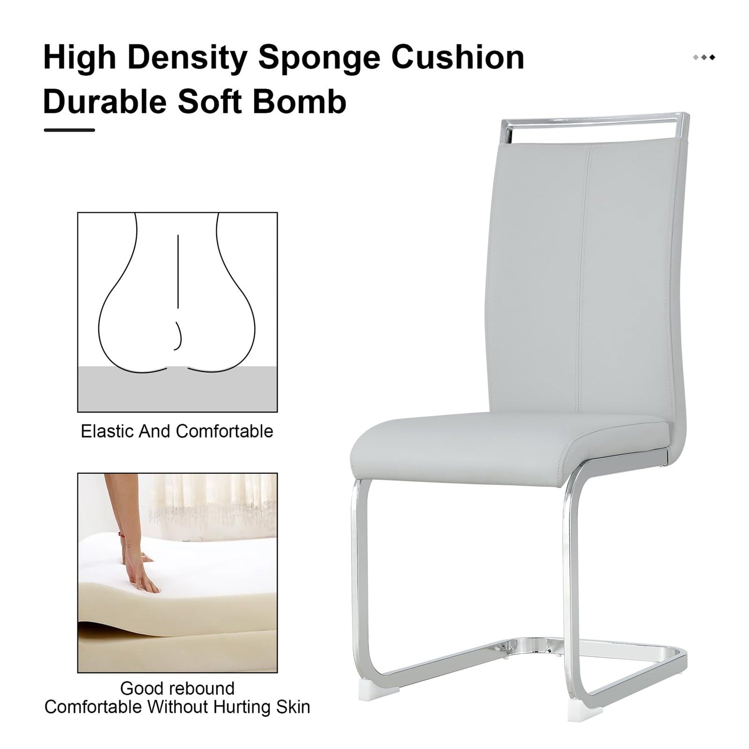 - Ergonomic Dining Chairs of 8: Every detail of the dining chair shows the craftsmanship, the ergonomic curved high back design, the waterproof and oil-resistant pu leather surface, the high elastic sponge, the gold metal frame, all the details ensure the happy use experience. Seat size :16.93"D*14.96"W
