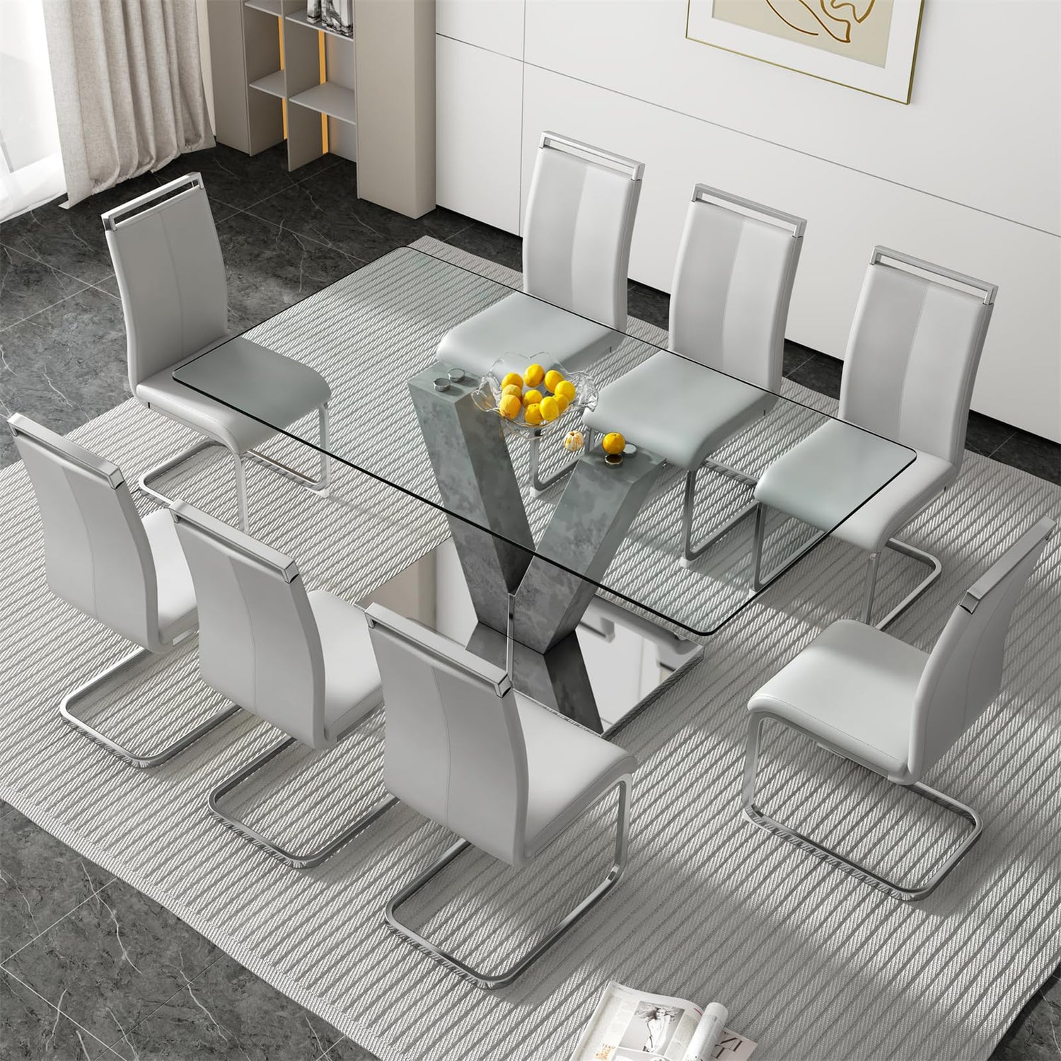 model number: Glass Dining Table Set for 8
