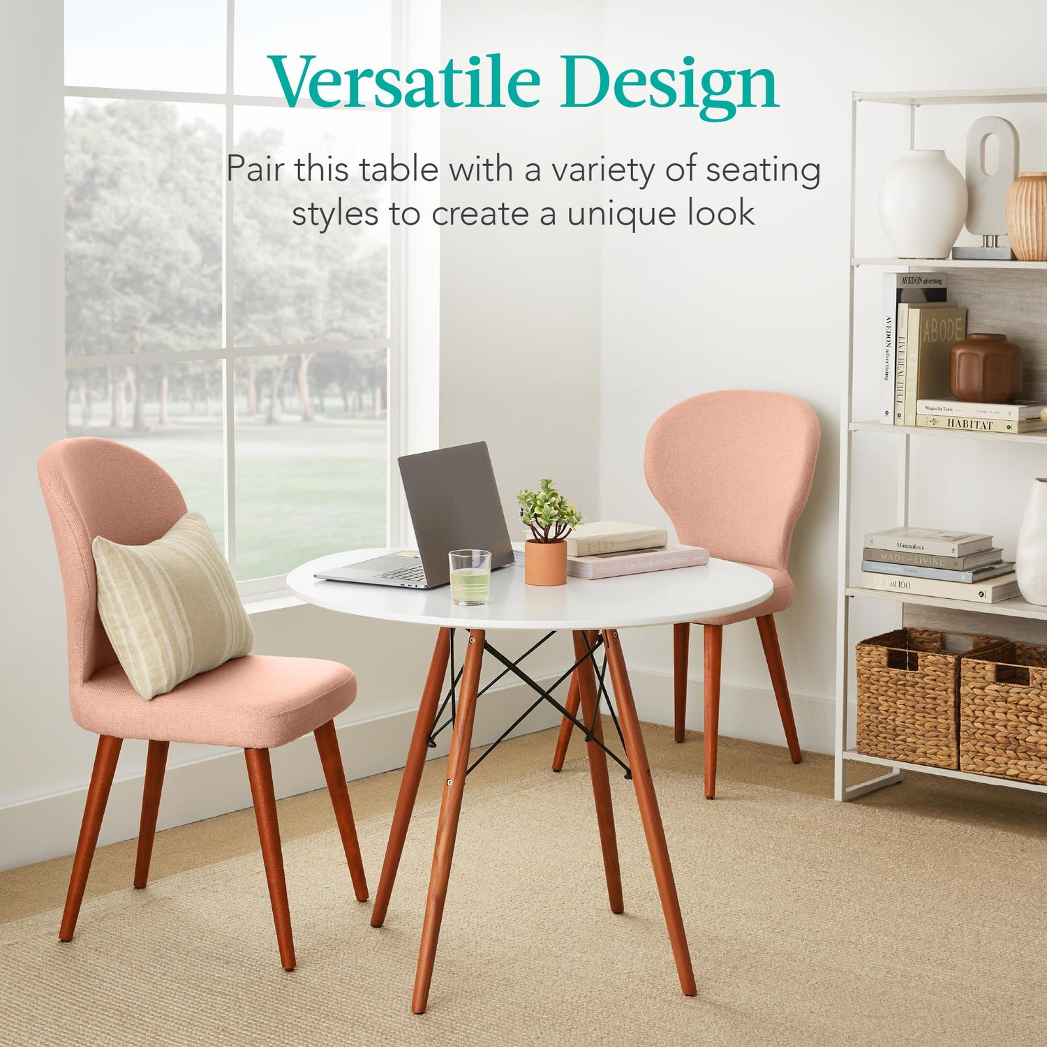 Best Choice Products 35.5in Round Dining Table, Compact Mid-Century Modern Table for 2-4, Home, Kitchen, Apartment w/Beech Wood Legs, Metal Frame - White