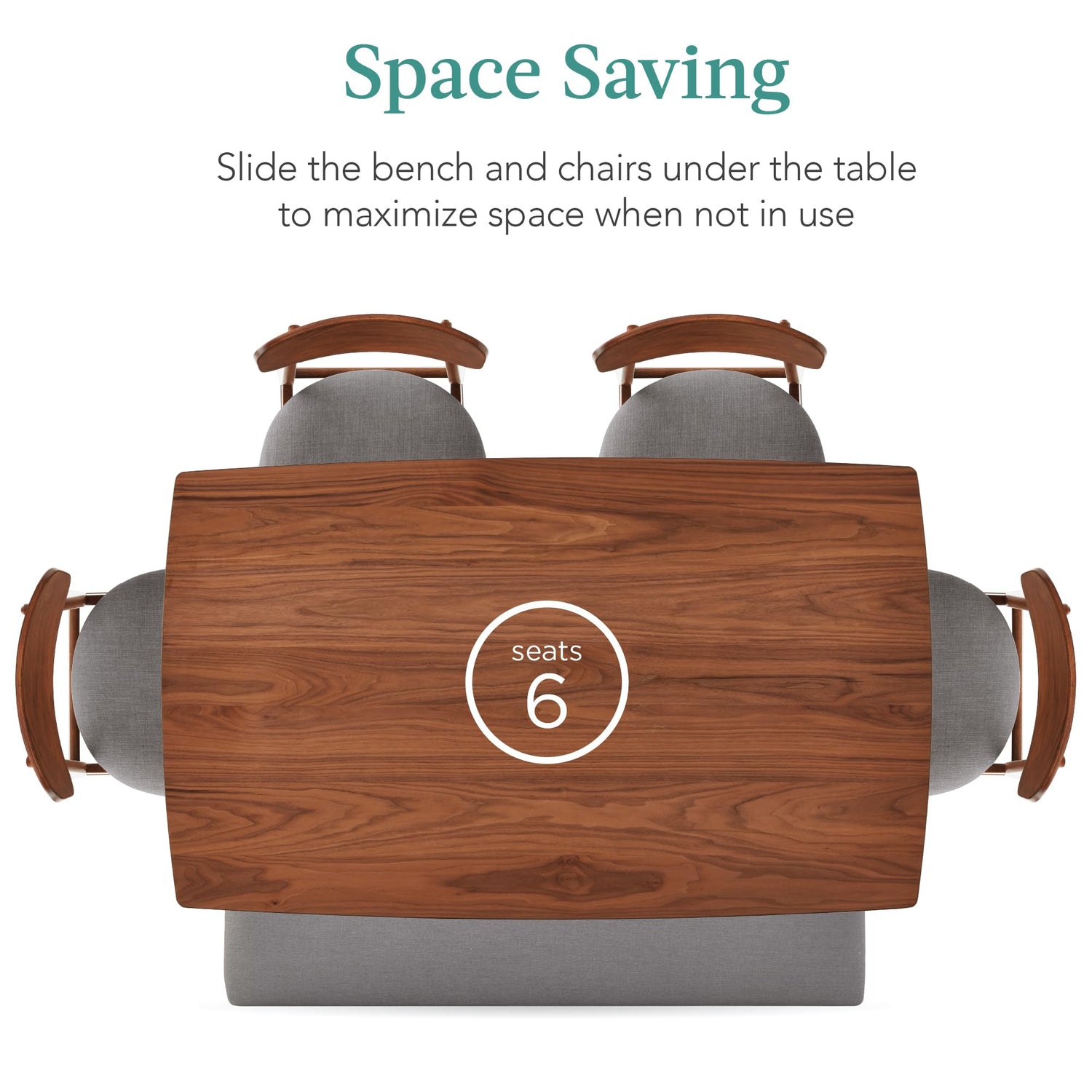 • SPACE SAVING: Slide the bench and chairs under the table to maximize space when this dining set is not in use
