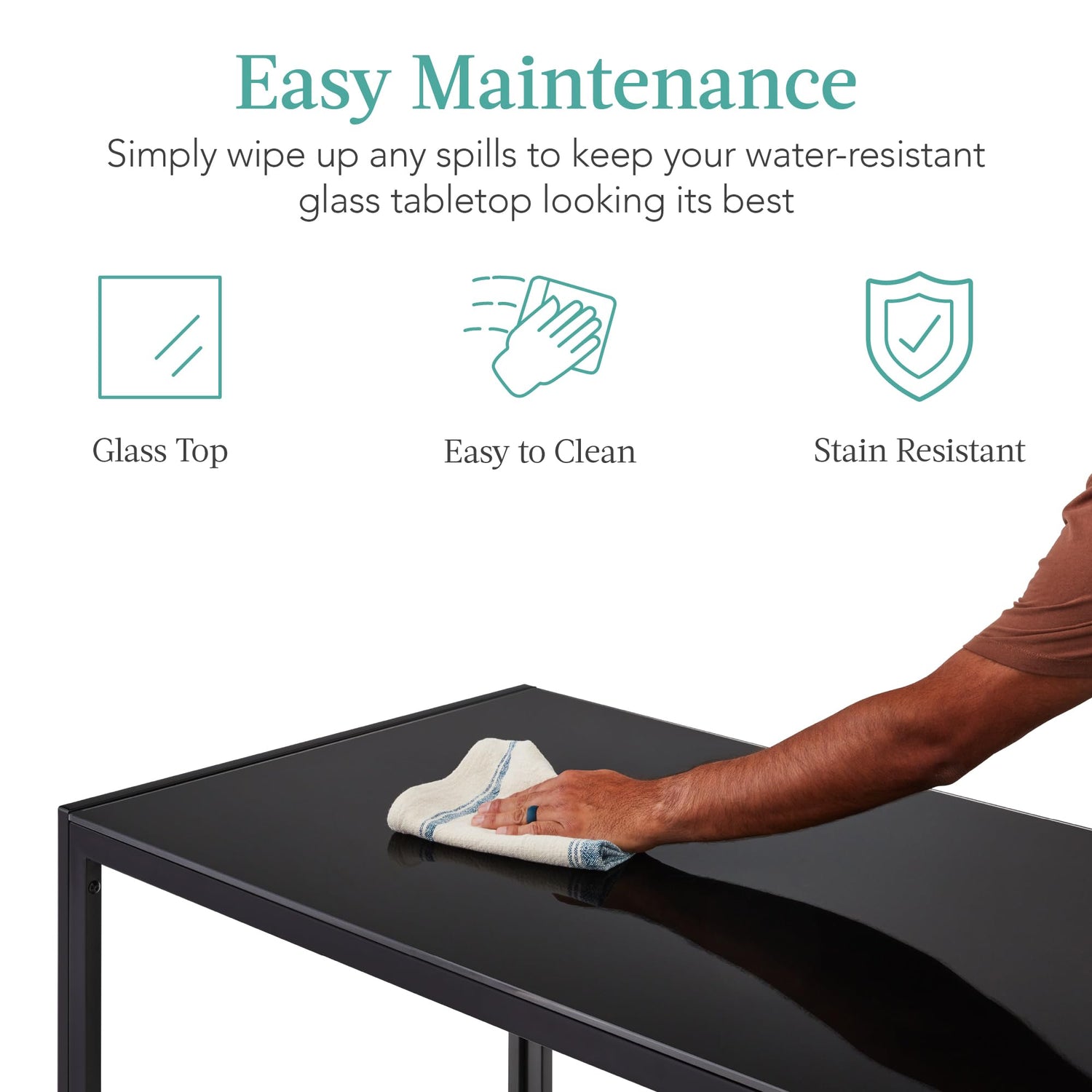 • EASY MAINTENANCE: In case of spills, the water-resistant glass tabletop allows for the easiest cleanup possible; simply wipe away the mess and be done in seconds!