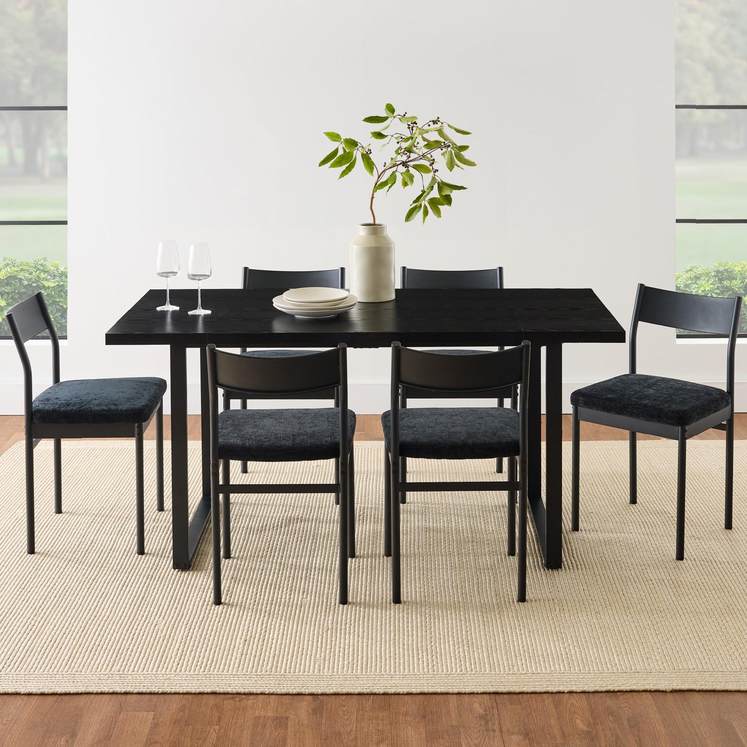 Best Choice Products 7-Piece Modern Dining Room Set, Kitchen Table Set, Dining Table w/ 6 Chairs, Upholstered Cushions, Solid Metal Frame, Curved Backrest - Black/Black