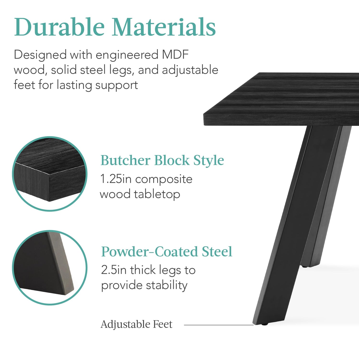 - DURABLE CONSTRUCTION: A 1.25-inch thick MDF butcher block tabletop sits on four powder-coated steel legs with adjustable feet for reliable balance and support