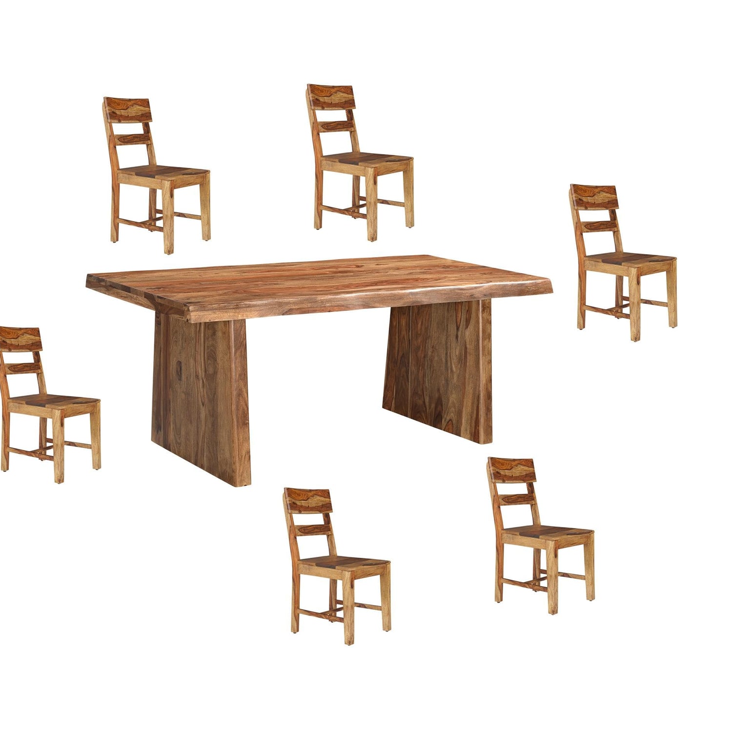 Brown Solid Wood 7-Piece Dining Set with Live Edge Table and Chairs