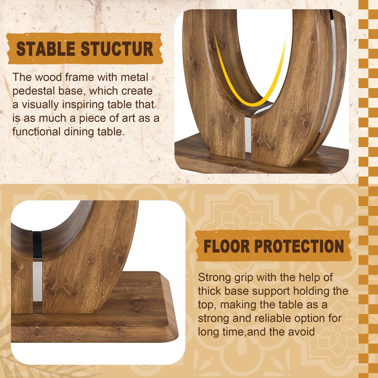 - ARTISTIC AND DURABLE DESIGN: The table's base is a testament to geometric artistry, blending a sturdy wood frame with a striking metal pedestal for a captivating dining experience. The modern chairs, with C-shaped black metal bases and anti-slip footpads, provide stability and floor protection, encapsulating a blend of innovative design and practicality.