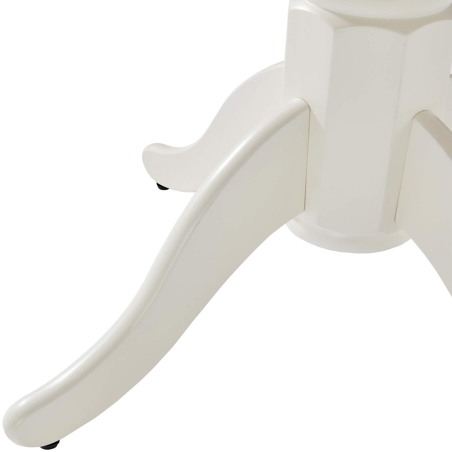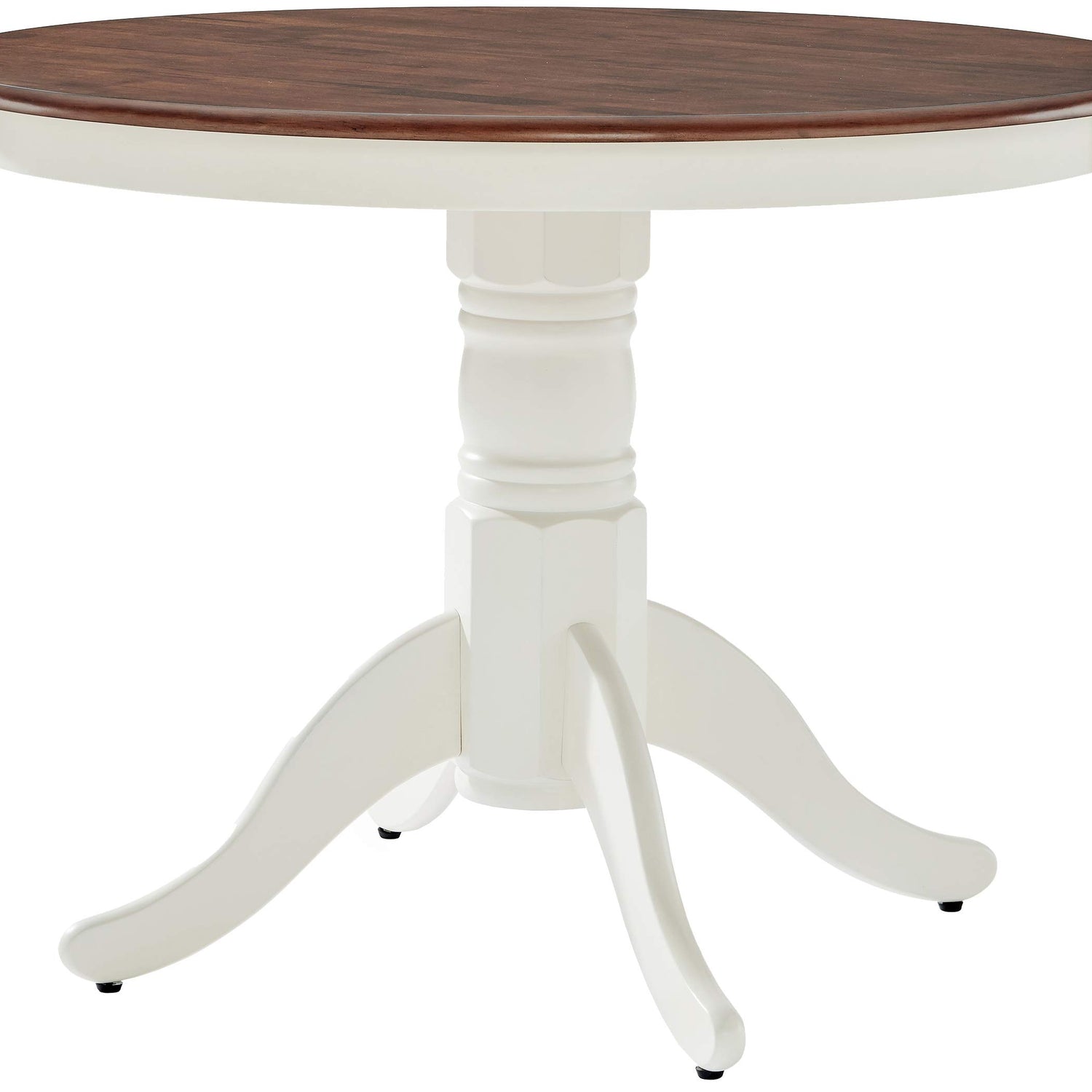 • DINE IN STYLE: This kitchen table has distressed white and dark cherry finishes. It features a turned pedestal base for support. The 42" diameter tabletop has a decorative edge, a generous apron, and a weight limit of 100 lbs.