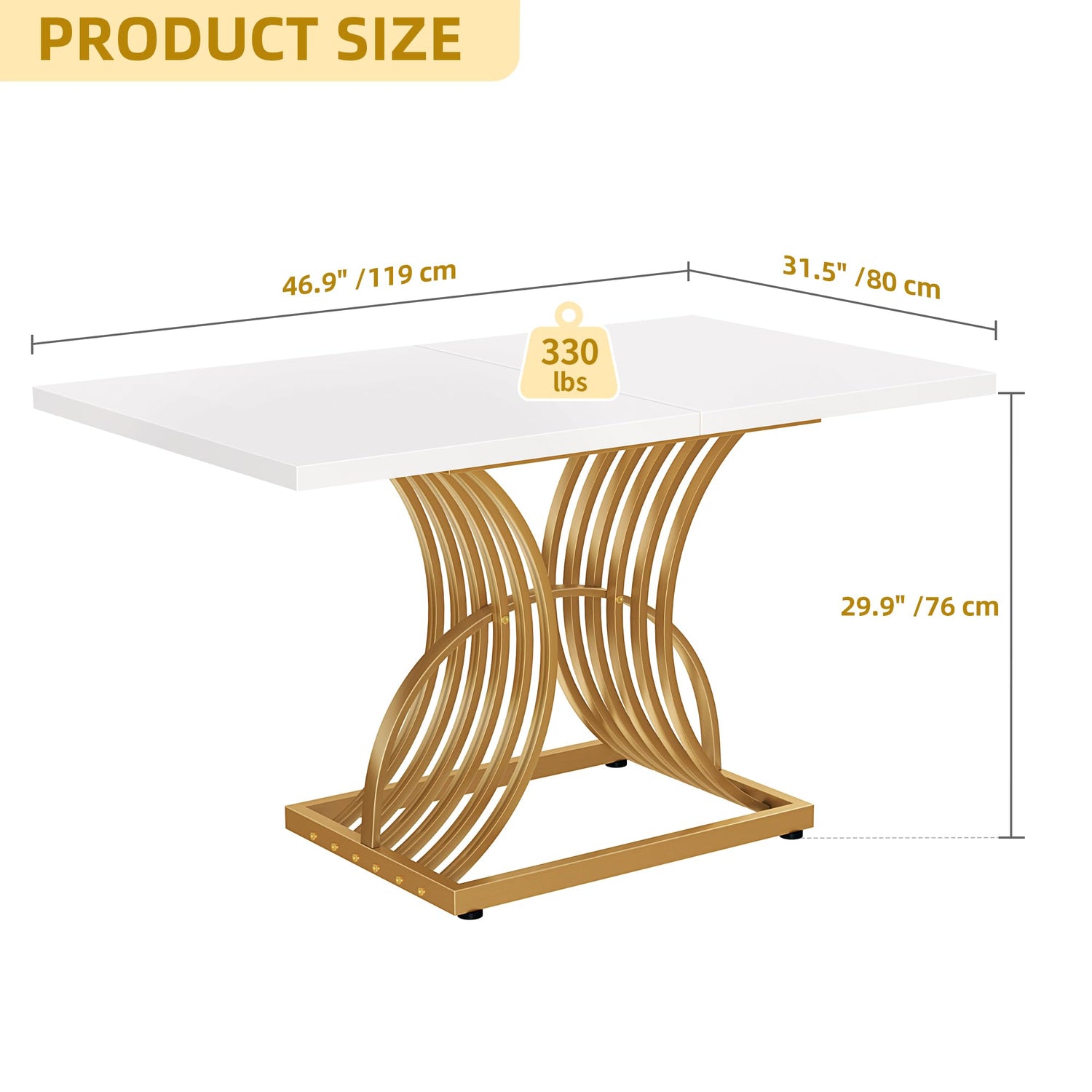 DWVO Modern Dining Table for 4 People 47 Inch Rectangular Kitchen Table with Faux Marble Tabletop and Gold Geometric Legs Small Dinner Table Kitchen & Dining Room Furniture White and Gold