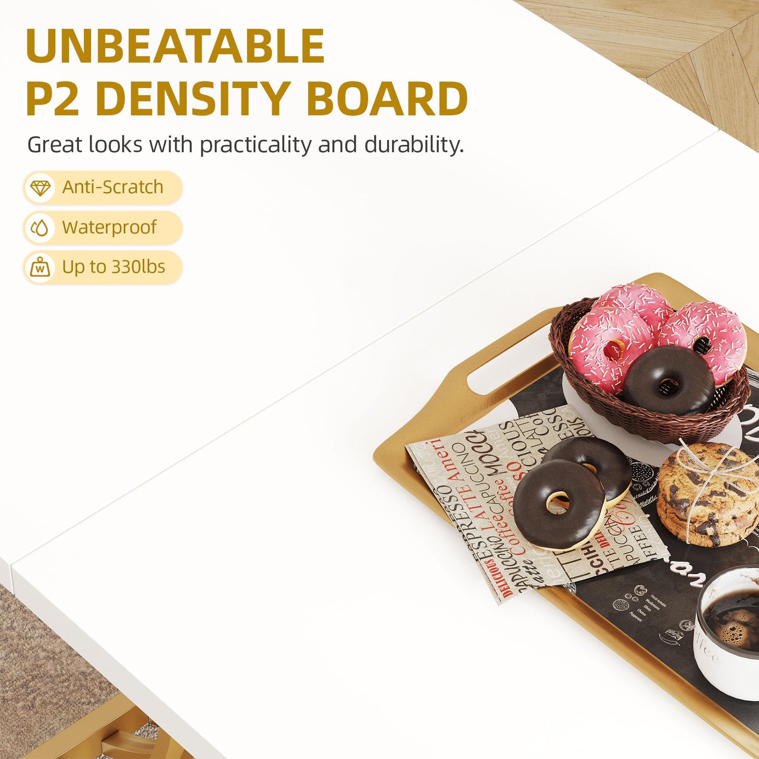 - Spacious and Stylish: Our dining table elevates your dining room ambiance with its modern color block design in white and gold. This round-arc and exquisite dining table perfectly complements any home decor