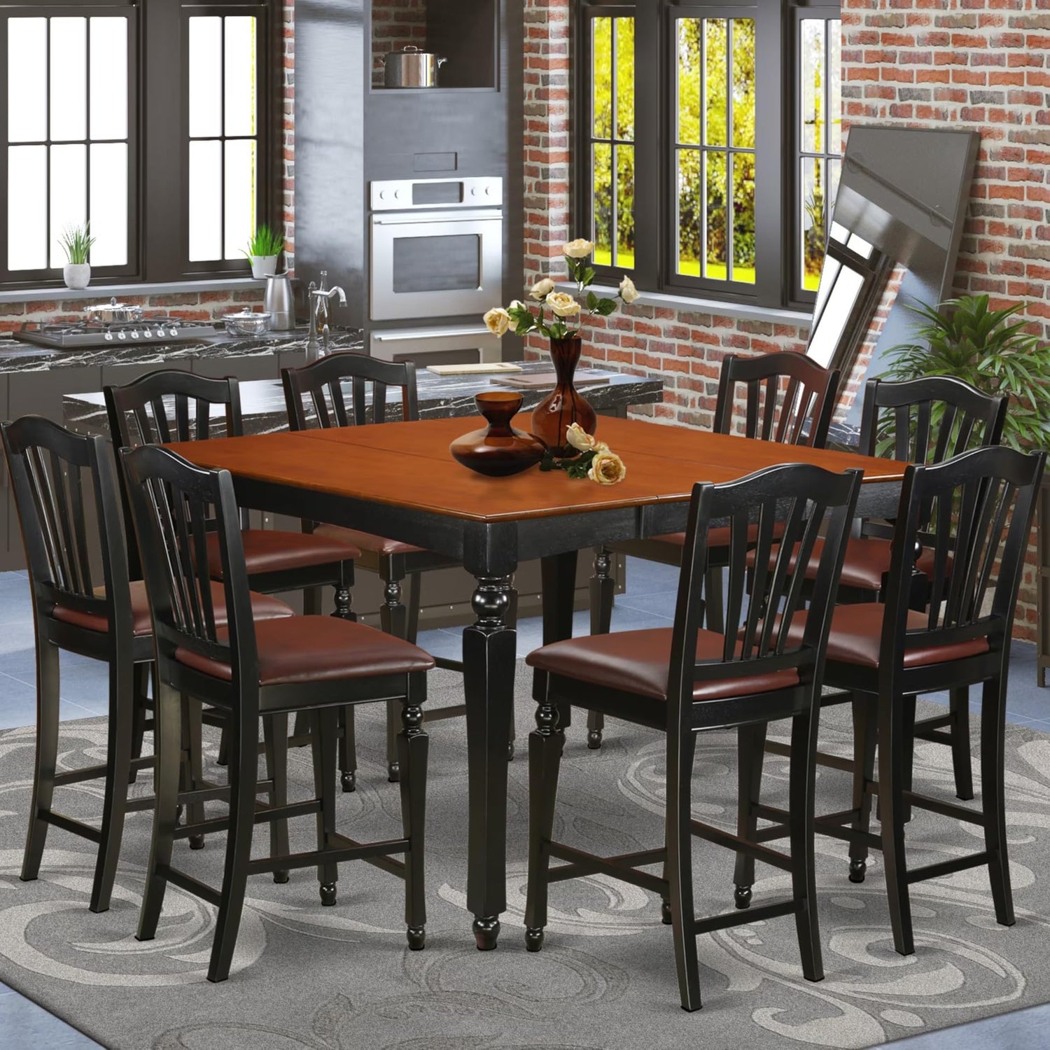 East West Furniture CHEL9-BLK-LC 9 Piece Counter Height Dining Set Includes a Square Kitchen Table with Butterfly Leaf and 8 Faux Leather Dining Room Chairs, 54x54 Inch, Black & Cherry