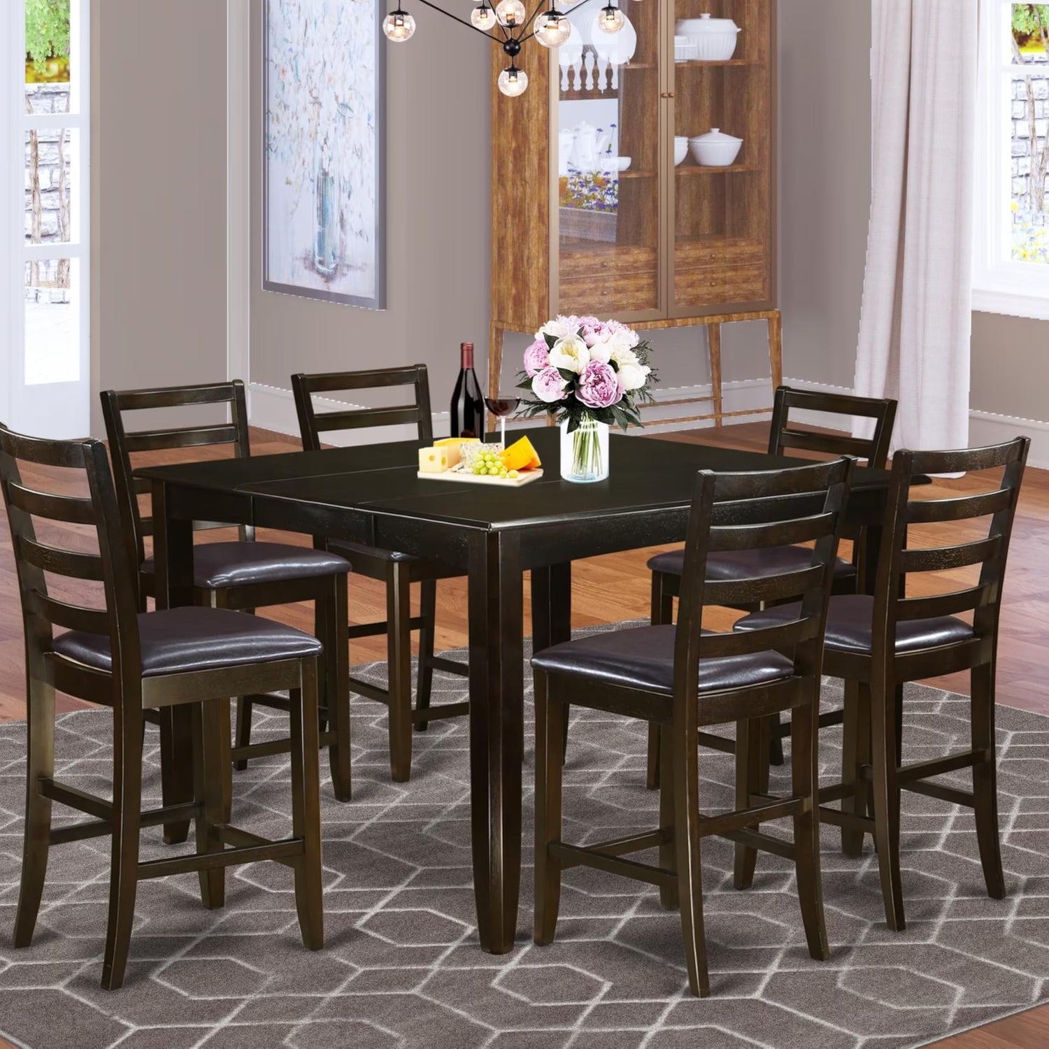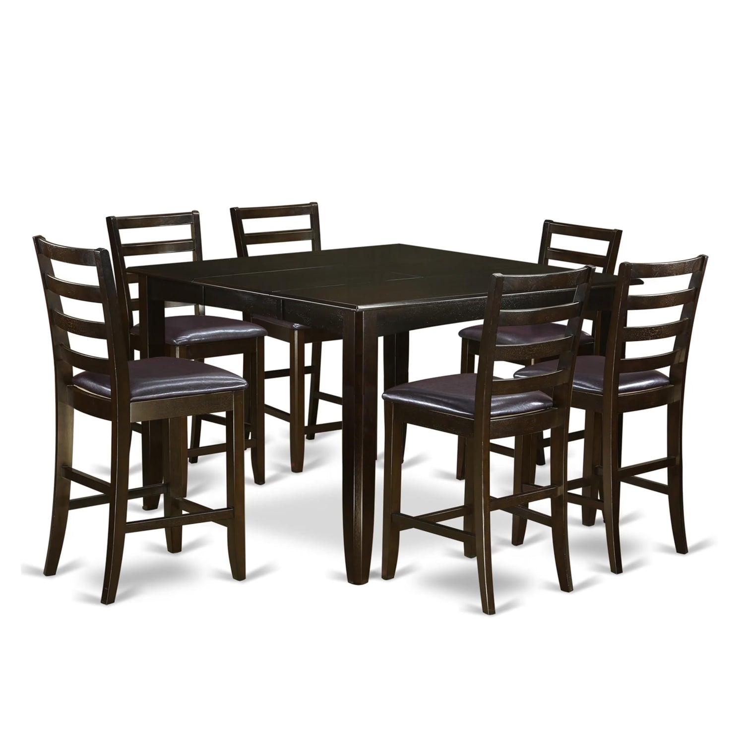 East West Furniture FAIR7-CAP-LC 7 Piece Counter Height Dining Table Set Consist of a Square Wooden Table with Pedestal and 6 Faux Leather Kitchen Dining Chairs, 54x54 Inch, Cappuccino