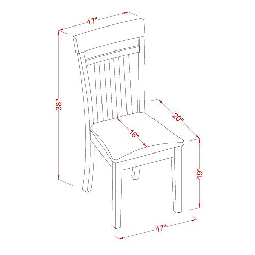 PRODUCT FEATURES: Frame Material: Rubber Wood Color: Cappuccino Seat Material: Wood Chairs Dimension: Length: 20; Width: 17; Height: 38. Table Measurement: Length: 72/54; Width: 42; Height: 30.