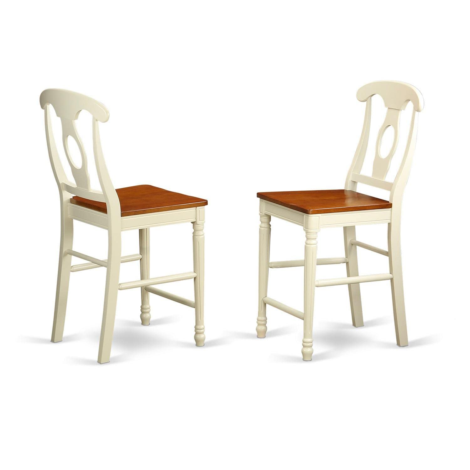 East West Furniture JAKE3-WHI-W 3 Piece Counter Height Dining Set for Small Spaces Contains a Round Wooden Table with Pedestal and 2 Kitchen Chairs, 36x36 Inch, Buttermilk & Cherry