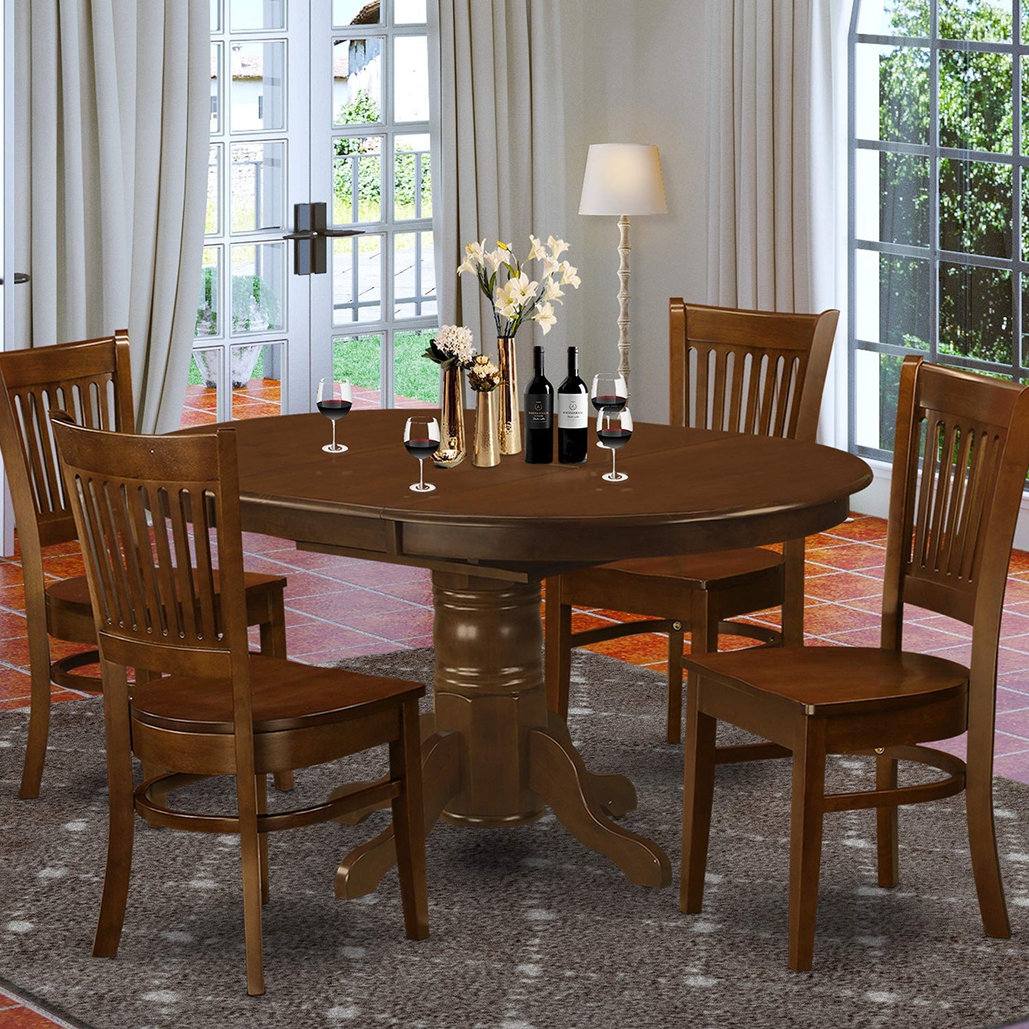 East West Furniture KEVA5-ESP-W 5 Piece Kitchen Table Set for 4 Includes an Oval Dining Table with Butterfly Leaf and 4 Dining Room Chairs, 42x60 Inch, Espresso