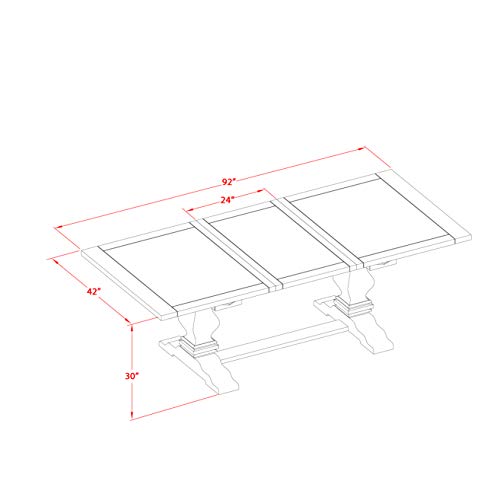 - ITEM DIMENSIONS: Dimensions of the Mid Century Dining Table are: Length: 92/68; Width: 42; Height: 30. The Dimensions of Upholstered Dining Chairs are: Length: 25; Width: 19.25; Height: 40.5.