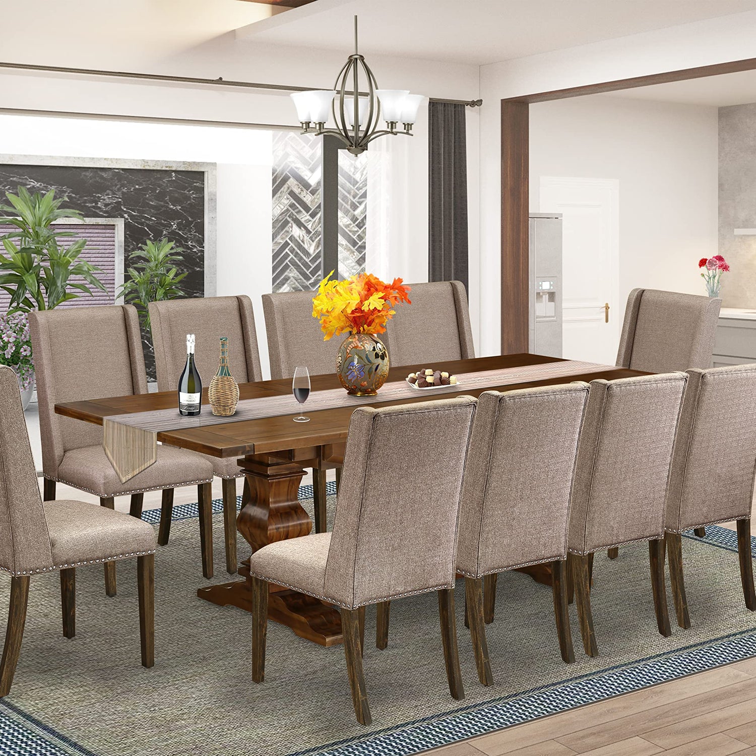 East West Furniture Lassale 11 Piece Dinette Set Includes a Rectangle Table with Butterfly Leaf and 10 Dark Khaki Linen Fabric Parson Dining Chairs, 42x92 Inch, Antique Walnut