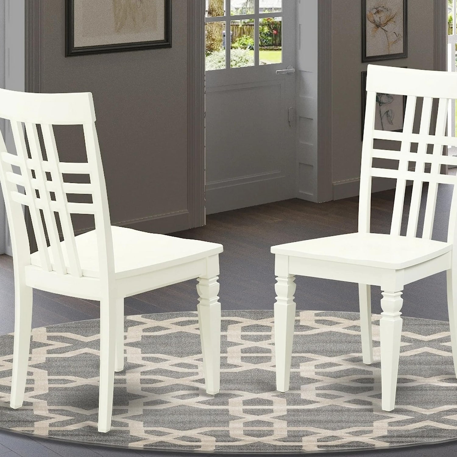 East West Furniture Logan Kitchen Dining Stylish Back Solid Wood Seat Chairs, Set of 2, Linen White